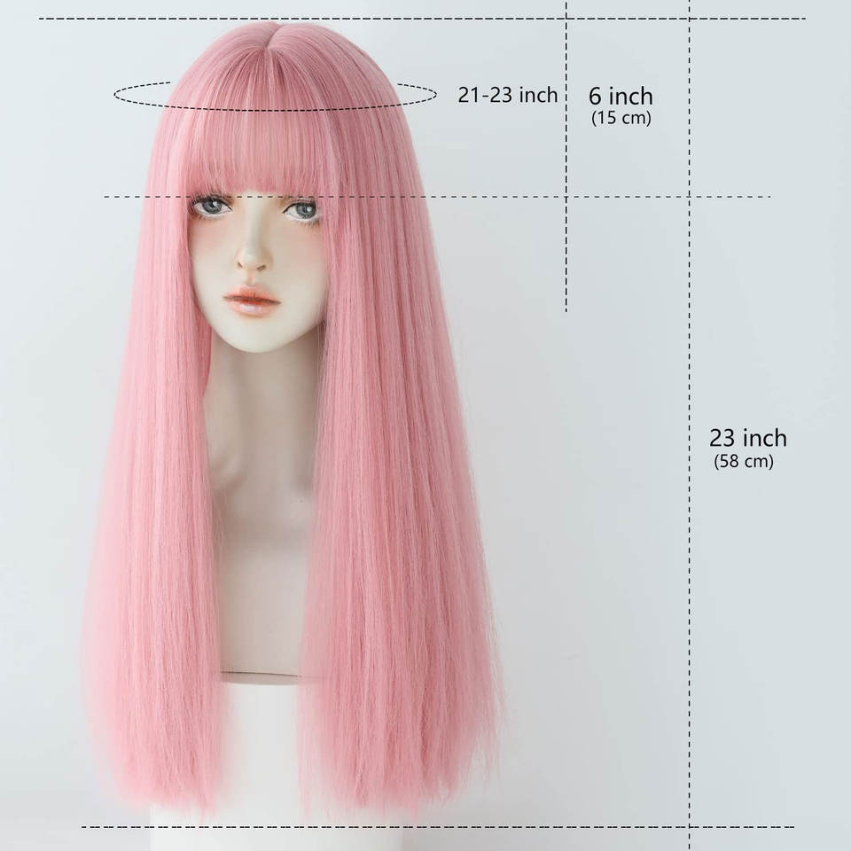 วิกผมสังเคราะห์พรีเมี่ยมทนความร้อนวิกผมยาวตรงขอบสีบลอนด์ผสมสำหรับผู้หญิงคอสเพลย์สีชมพู
