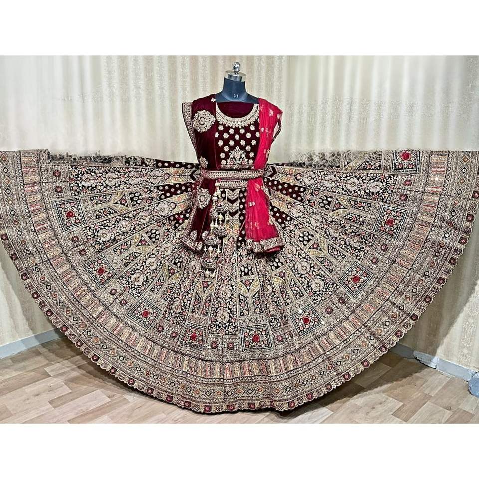 Lehenga choli คู่แต่งงานแบบหนักพิเศษ dupatta zari มีรายละเอียดสไตล์โมเดิร์นสำหรับปาร์ตี้สำหรับฤดูหนาวฤดูร้อน B2B ส่งออกราคาถูก