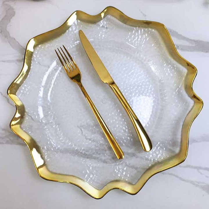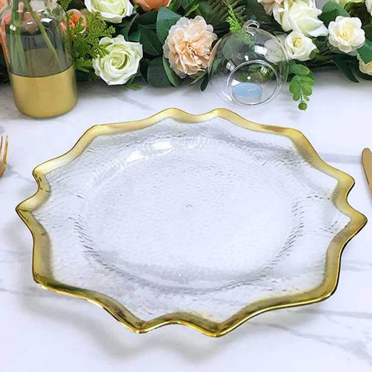 จานอาหารค่ำพลาสติกใสแบบใช้แล้วทิ้งสีทอง13 "สำหรับงานแต่งงานใช้ในงานปาร์ตี้ใช้ครั้งเดียวเป็นมิตรกับสิ่งแวดล้อมตัวอย่างฟรี