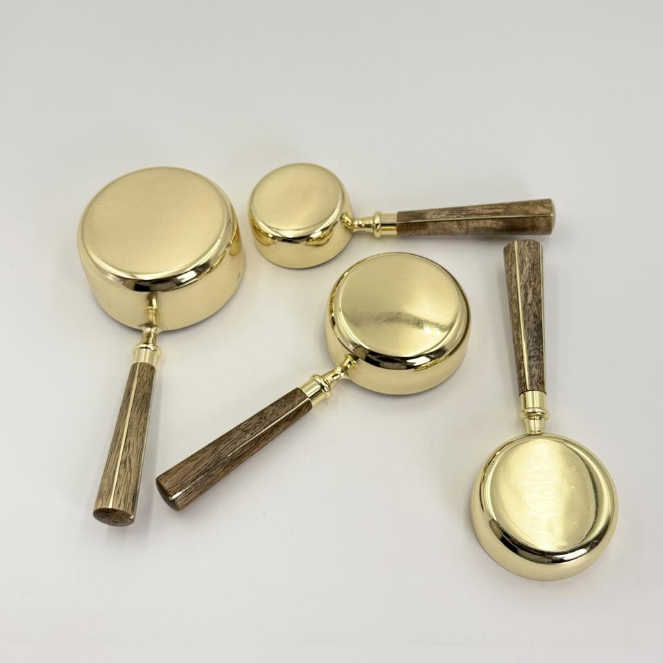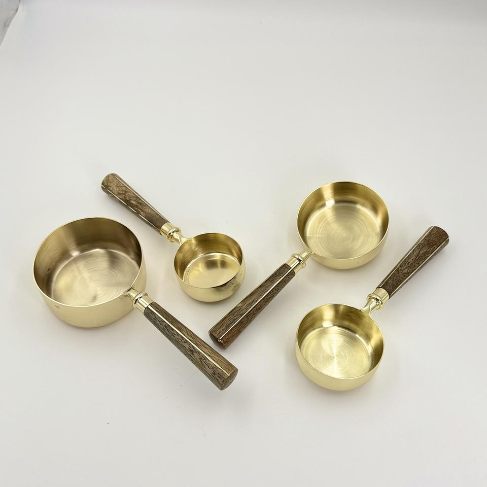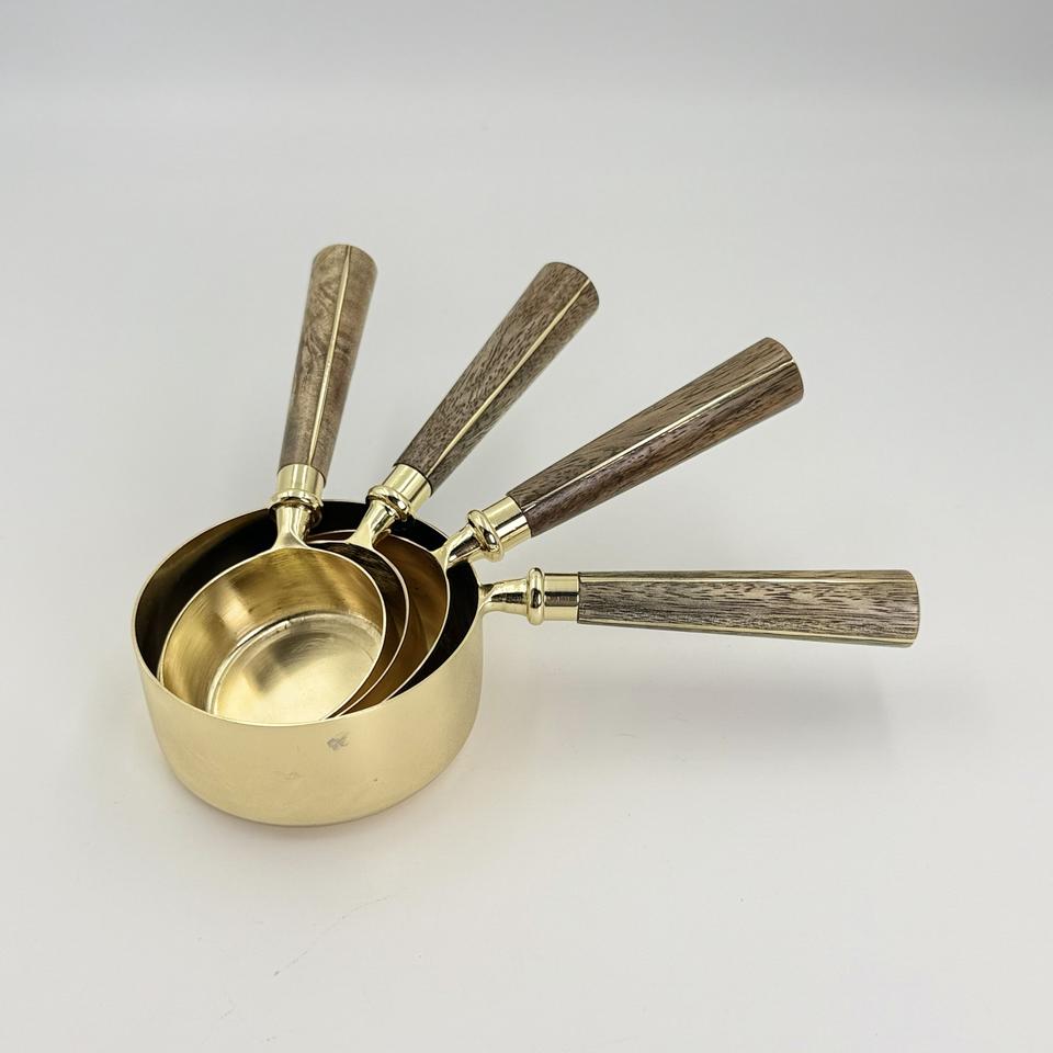 ถ้วยตวงสแตนเลสเกรดพรีเมียม ทนทาน เป็นมิตรกับสิ่งแวดล้อม เคลือบ PVD สีทอง พร้อมด้ามจับไม้ ใช้กับเครื่องล้างจานได้
