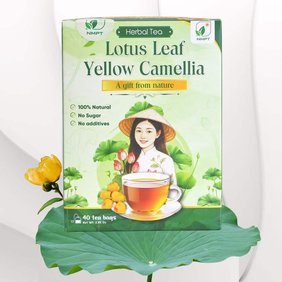ชาสมุนไพรพรีเมียมผสมใบบัวและดอกคามีเลียสีเหลือง ชนิดซองชาแห้ง สำหรับดื่มเพื่อสุขภาพและลดน้ำหนัก 2 กรัม อายุการเก็บรักษา 2 ปี ผลิตในเวียดนาม