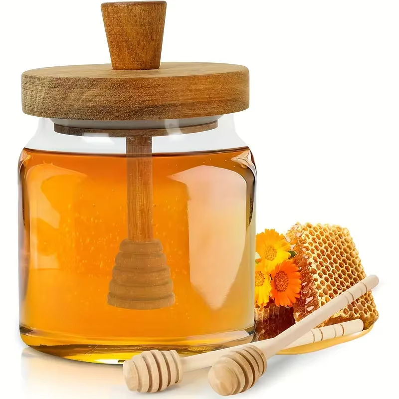โถแก้วบอโรซิลิเกตทรงสูงอุปกรณ์กวนทำจากไม้ใสสำหรับเก็บของในห้องครัวฝาไม้น่ารัก