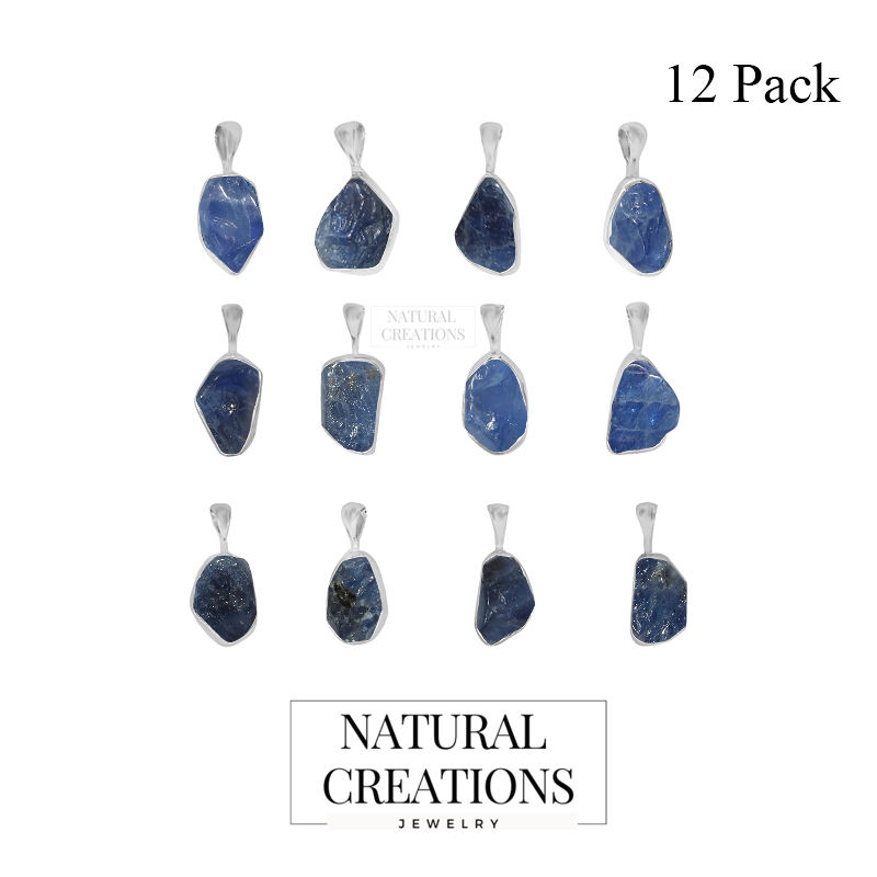จี้เงินแท้ 925 คุณภาพพรีเมียม ประดับพลอยไพลินสีน้ำเงินเจียรหยาบ ตัวล็อคแบบสปริง ตัวเรือนแบบเบเซลเซ็ตติ้ง สายแบบเคเบิล