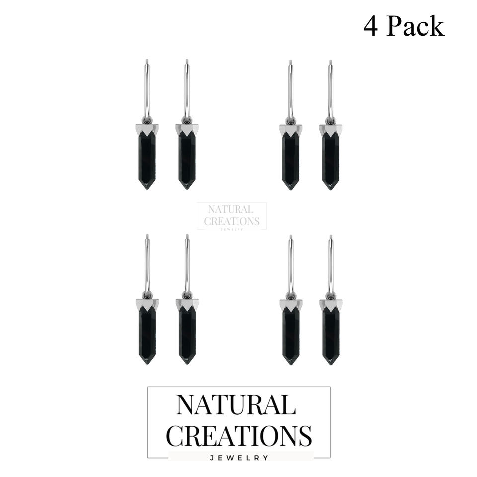 ต่างหูเงินแท้ 925 ประดับพลอยออนิกซ์สีดำทรงดินสอ งานละเอียดพรีเมียม ติดกาวอย่างดี เหมาะสำหรับงานแต่งงาน ของขวัญสุดหรู ชุด 4 ชิ้น