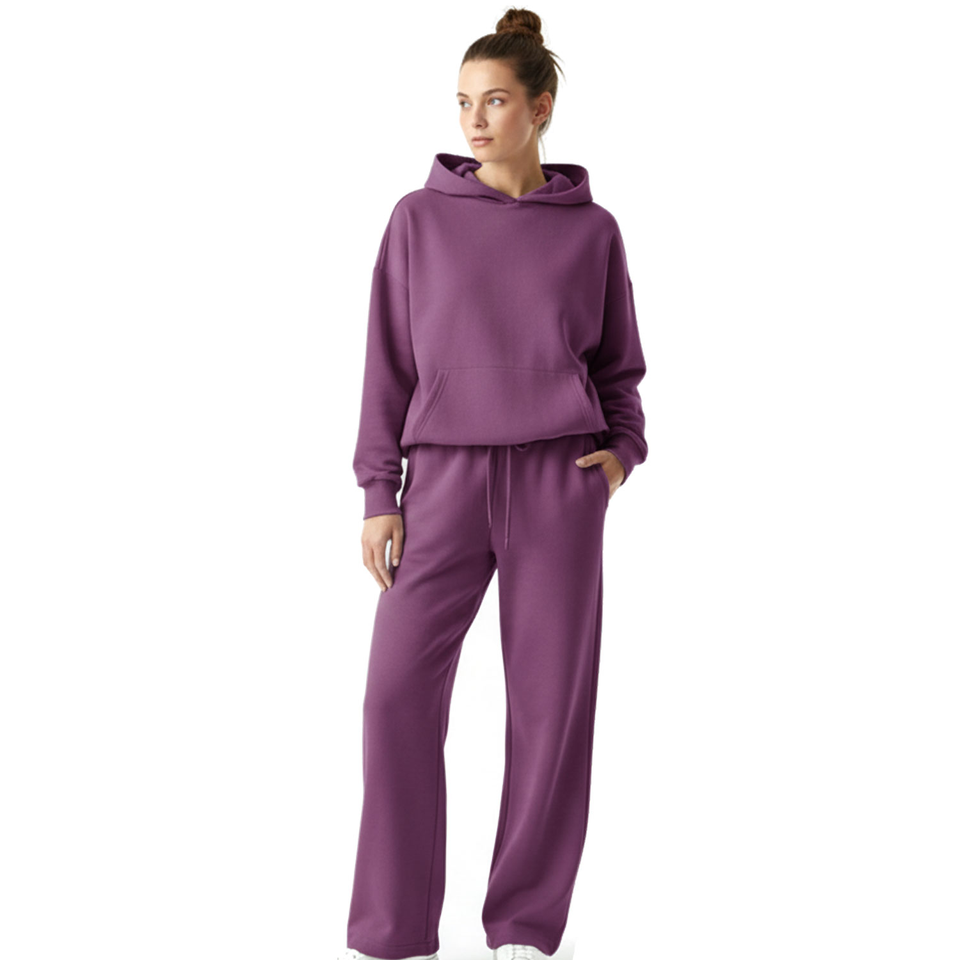 ชุดเซ็ตเสื้อฮู้ดและกางเกงสตรี ผ้าฟลีซสำหรับฤดูหนาว ผ้าฝ้าย 100% คุณภาพพรีเมียม ระบายอากาศได้ดี สีพื้น สไตล์สตรีทแวร์