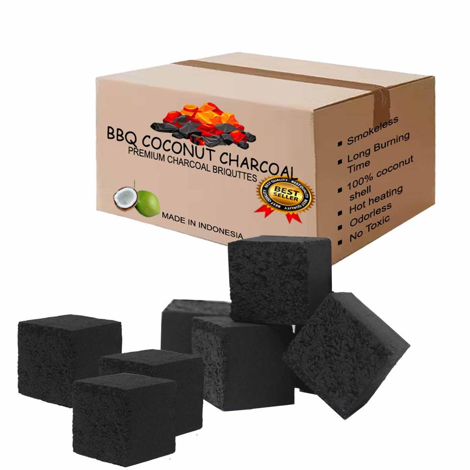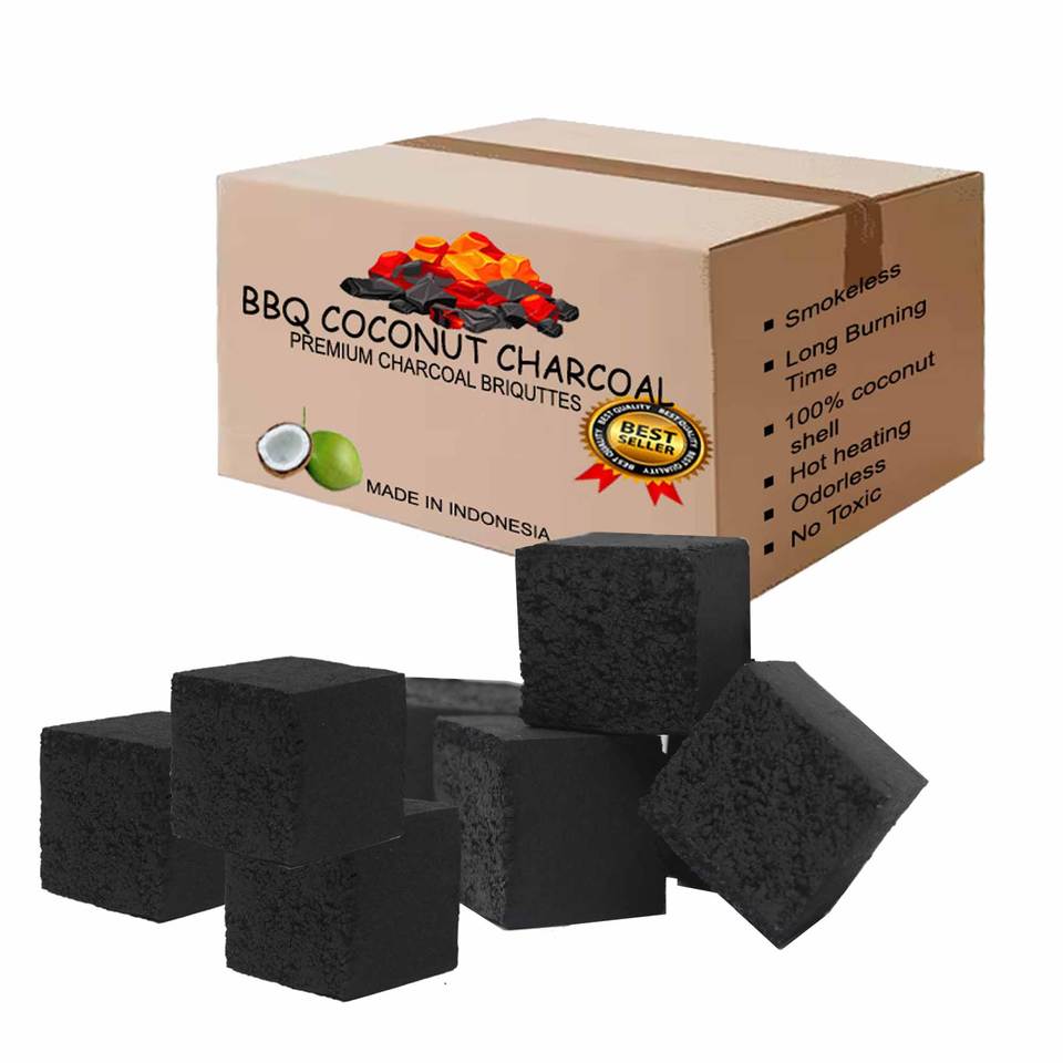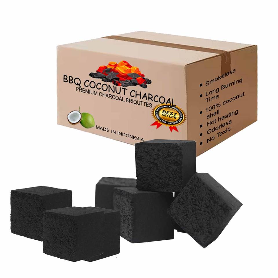 เตาย่างถ่านทรงลูกบาศก์สีดำกะลามะพร้าวธรรมชาติบาร์บีคิวพลังงานสีเขียวสำหรับผู้ซื้อกลางแจ้งในยุโรป