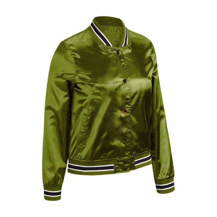 แจ็กเก็ตบอมเบอร์ซาตินกระดุมโอเวอร์ไซส์สำหรับผู้หญิงแจ็กเก็ตผ้าไหมซาตินสไตล์สตรีทแฟชั่น