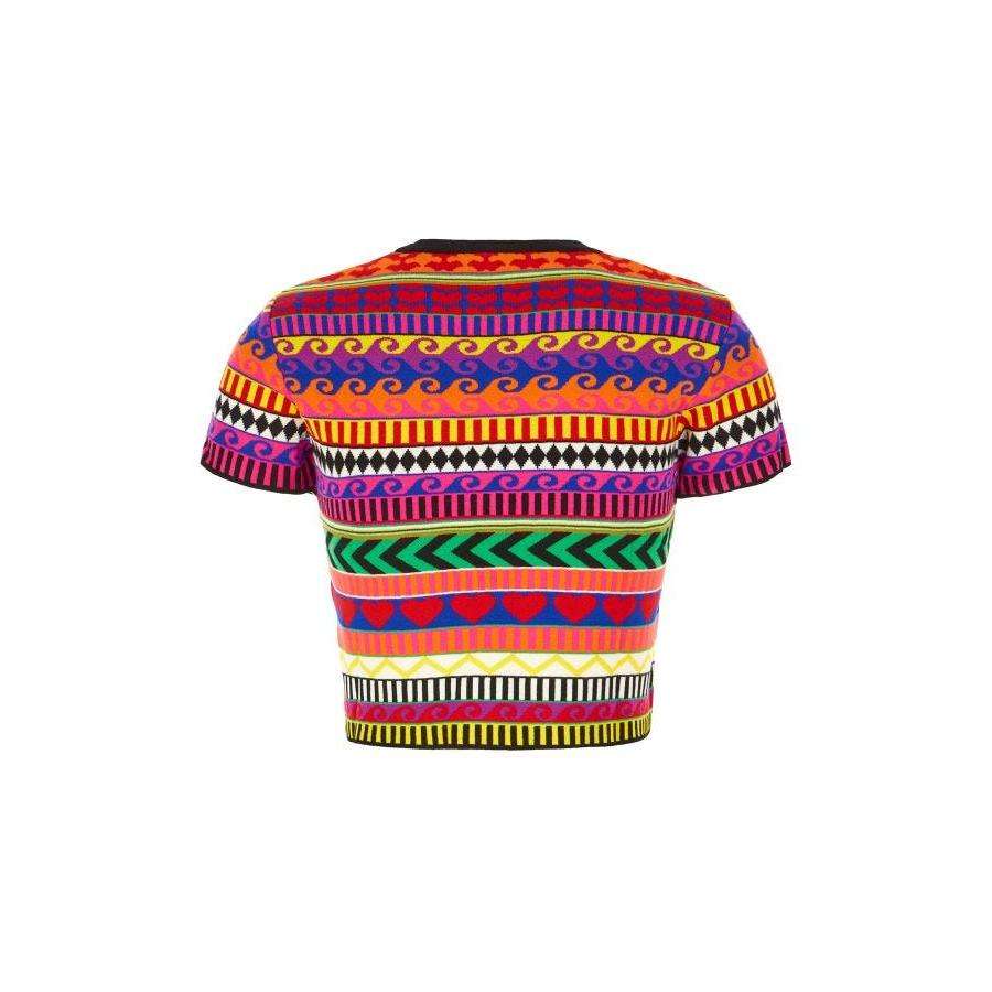 เสื้อยืดผ้าฝ้ายถักหลากสีสำหรับผู้หญิงลายเรขาคณิต