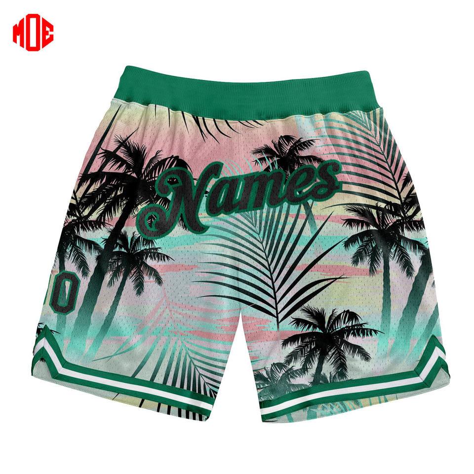 กางเกงขาสั้นสำหรับวิ่งออกกำลังกายสำหรับผู้ชายกางเกงชายหาดลายดอกไม้สีทึบงานปักตามสั่งสวมใส่สบายแนวสตรีทสูง