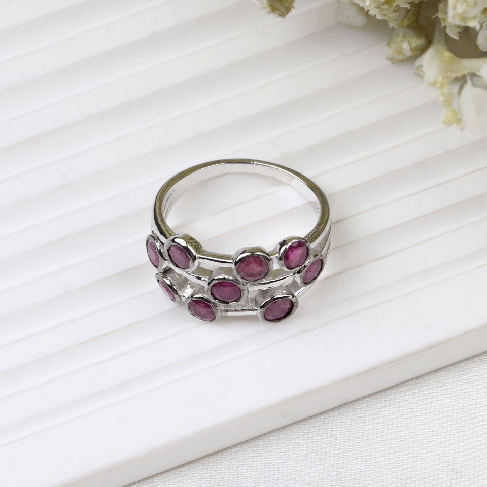 แหวนพลอยทับทิมธรรมชาติที่ผ่านการรับรองจาก IGI พร้อม925สีเงินสเตอร์ลิงทำด้วยมือคุณภาพสูง