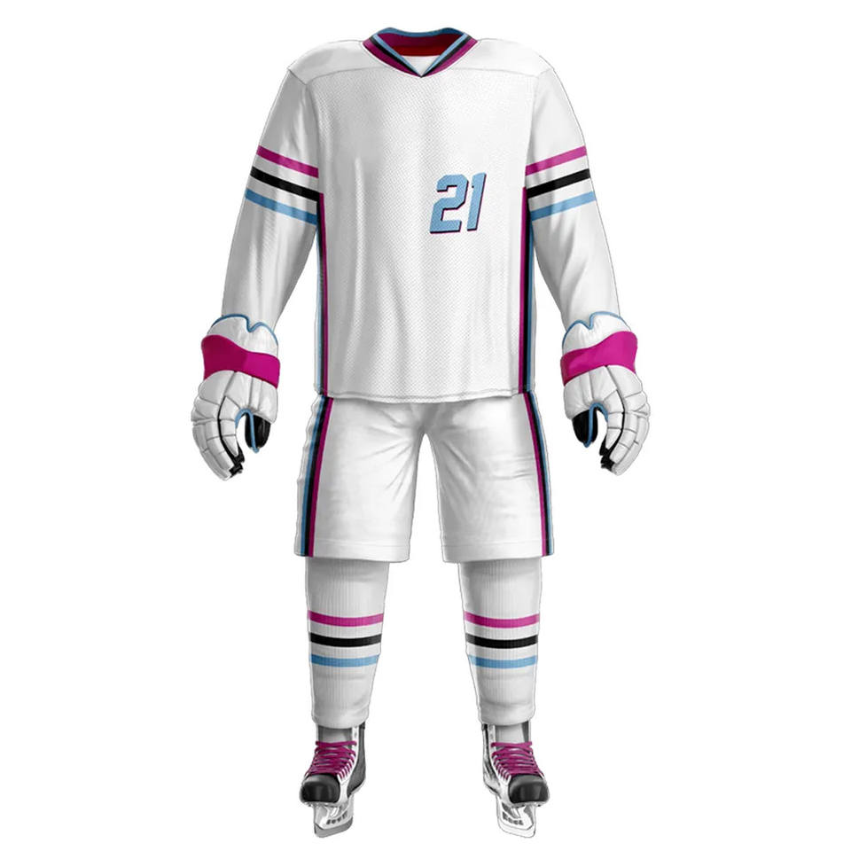 ชุดยูนิฟอร์มฮอกกี้น้ำแข็งสำหรับผู้ชายคุณภาพพรีเมียม ระดับสูงสุด สำหรับผู้ใหญ่ ให้ประสิทธิภาพสูงสุดในการฝึกซ้อมและการแข่งขัน เป็นมิตรต่อสิ่งแวดล้อม ยืดได้สี่ทิศทาง
