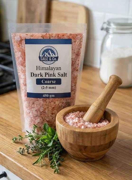 เกลือหิมาลัยสีชมพูเข้มเกรดพรีเมียม เม็ดละเอียด บรรจุในซองตั้งได้ 200 กรัม เกลือปรุงอาหารระดับพรีเมียม ยี่ห้อ Sauz & Co จากโรงงานโดยตรง