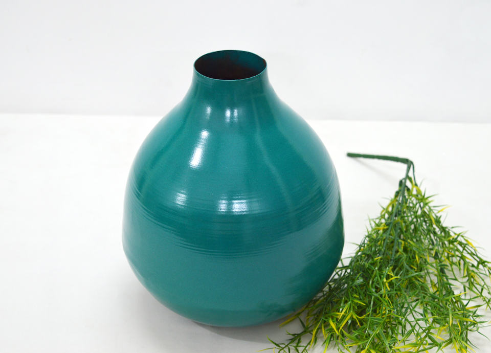 แจกันอลูมิเนียมชุบนิกเกิลเคลือบผงสีเขียวแบบพรีเมี่ยมแจกันสไตล์หรูหราสำหรับบ้านและงานแต่งงาน
