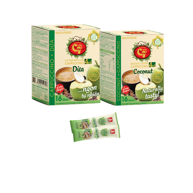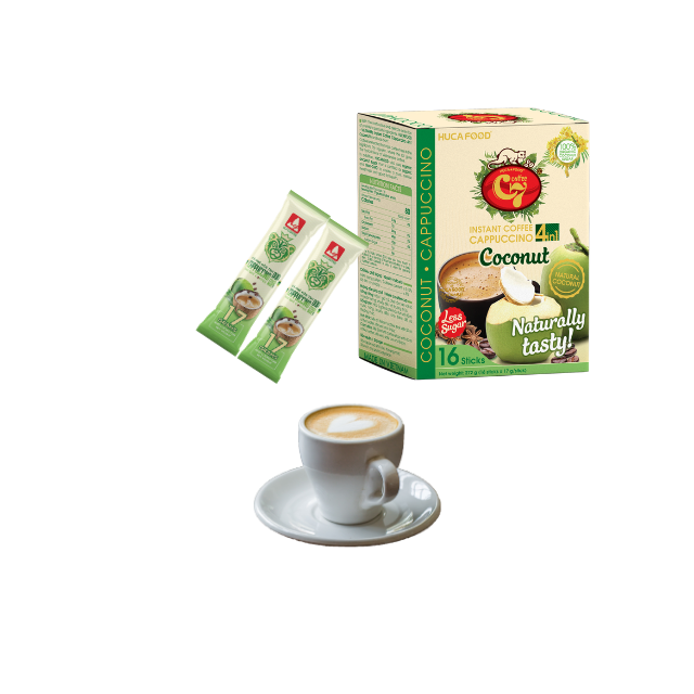 Hucafood กล่องกาแฟสำเร็จรูป4in1พรีเมี่ยมคาปูชิโน่เวียดนามพร้อมมะพร้าวและผลไม้รสชาติกลางน้ำตาล