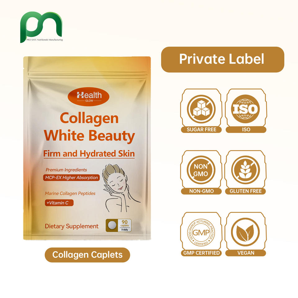 อาหารเสริมเพื่อสุขภาพผิวขาวใส ชะลอวัย ต่อต้านอนุมูลอิสระ สูตรพรีเมียม คอลลาเจนไฮโดรไลซ์แบบเม็ด 90 เม็ด (OEM รับผลิตแบรนด์ส่วนตัว)