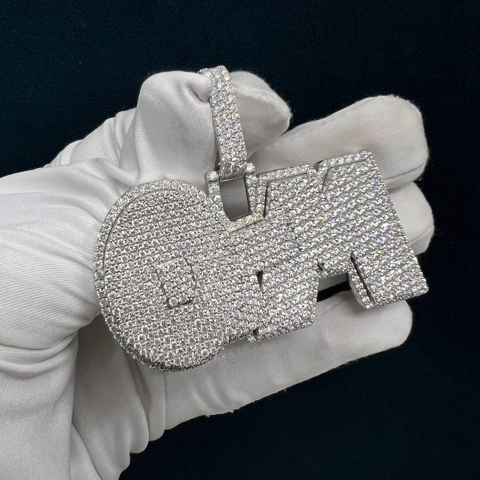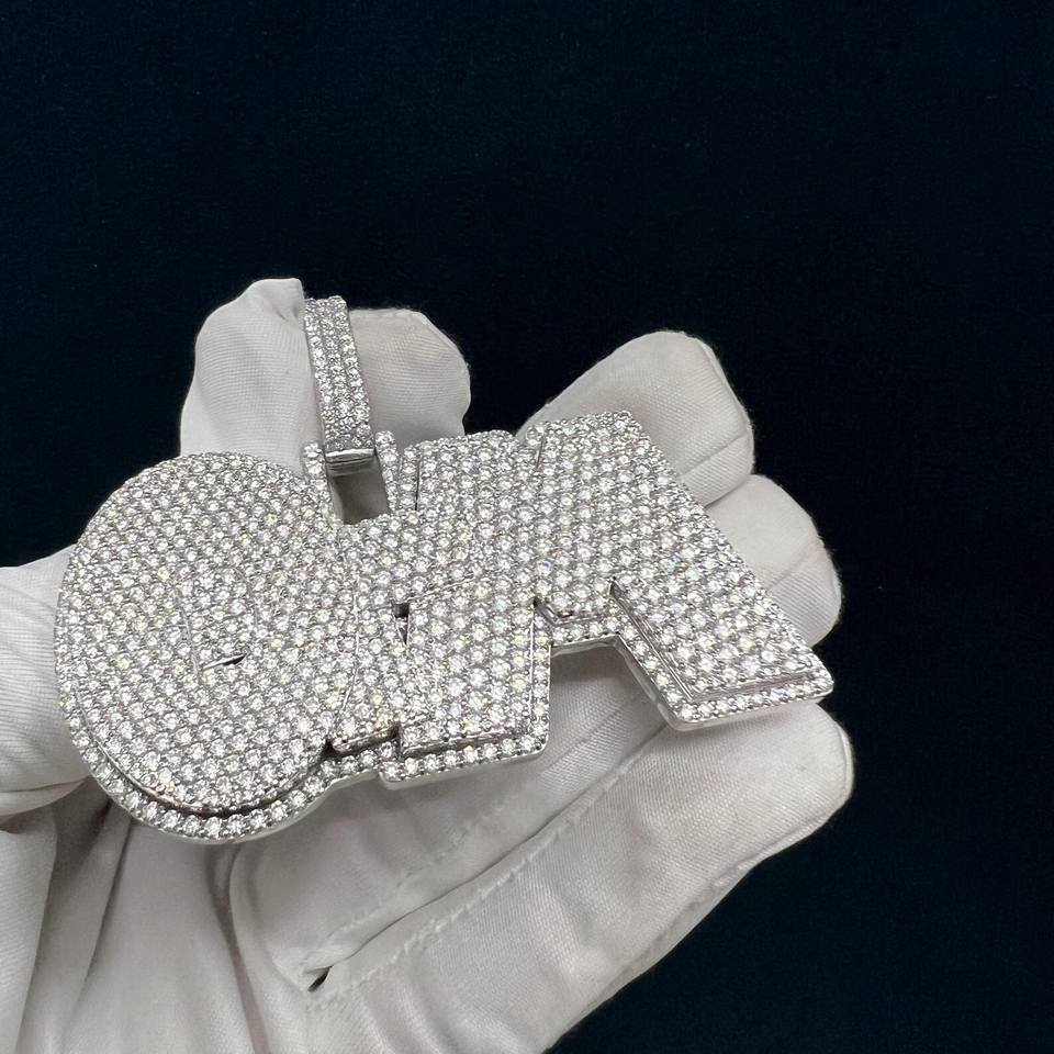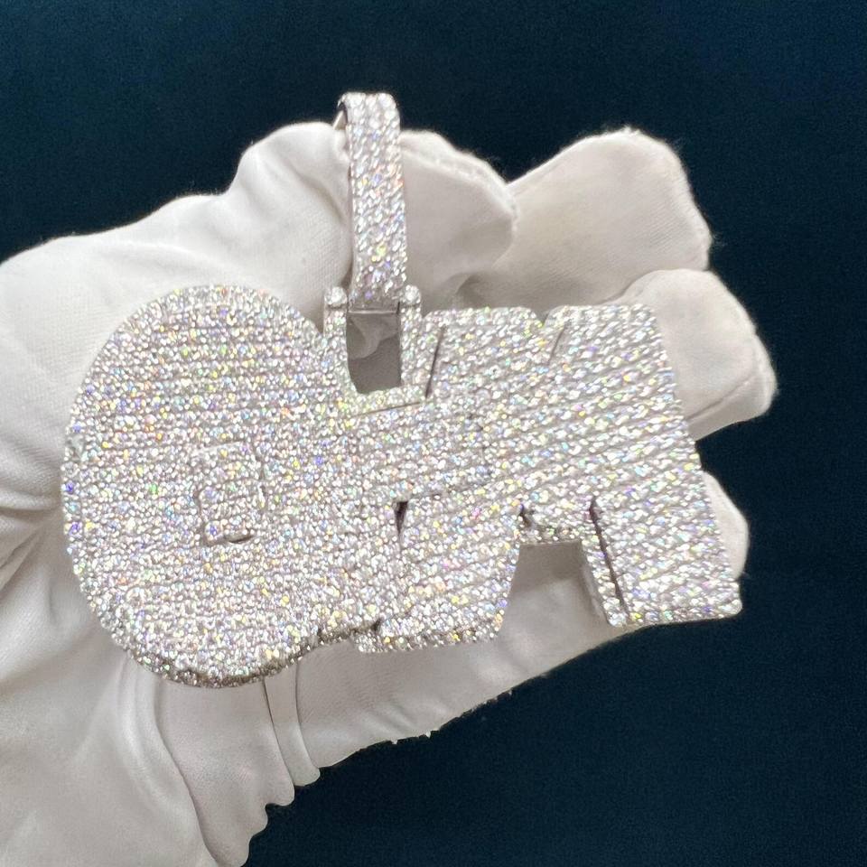 จี้ห้อยคอแบบพรีเมียมประดับเพชรโมอิสซาไนต์ทรงบริลเลียนต์คัท VVS พร้อมสลักชื่อตามสั่ง ตัวเรือนเงินแท้ 925 สไตล์ฮิปฮอป พร้อมจี้รูปตัวอักษรแบบหรูหรา