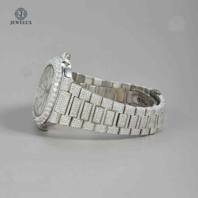 นาฬิกาฮิปฮอปประดับเพชรโมอิสซาไนต์แบบพรีเมียม พร้อมเพชรฝังเต็มตัวเรือน ตัวเรือนเหล็กคุณภาพสูง สายสแตนเลส และนาฬิกาเพชร