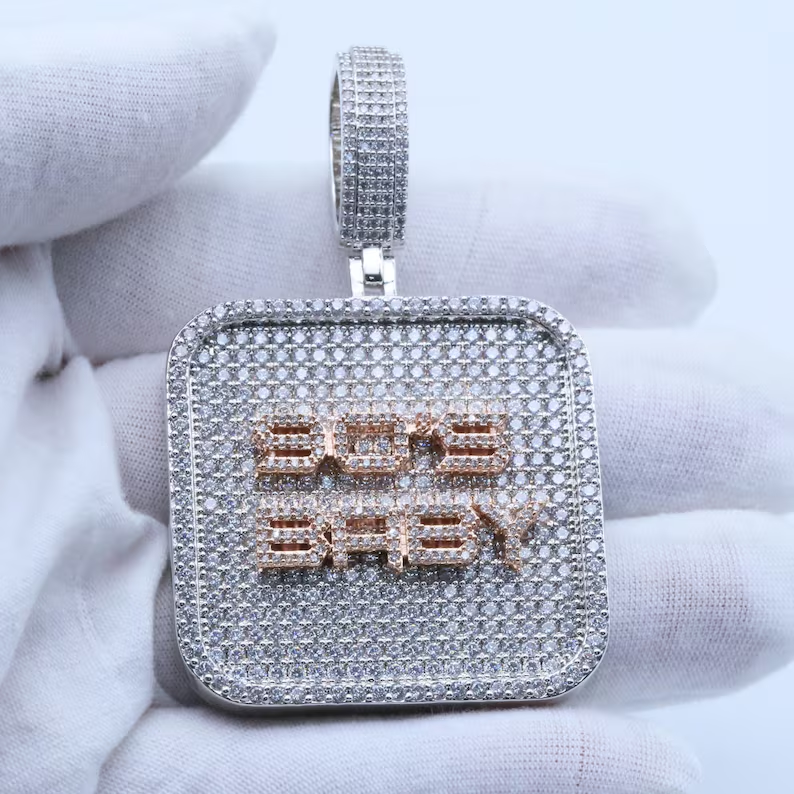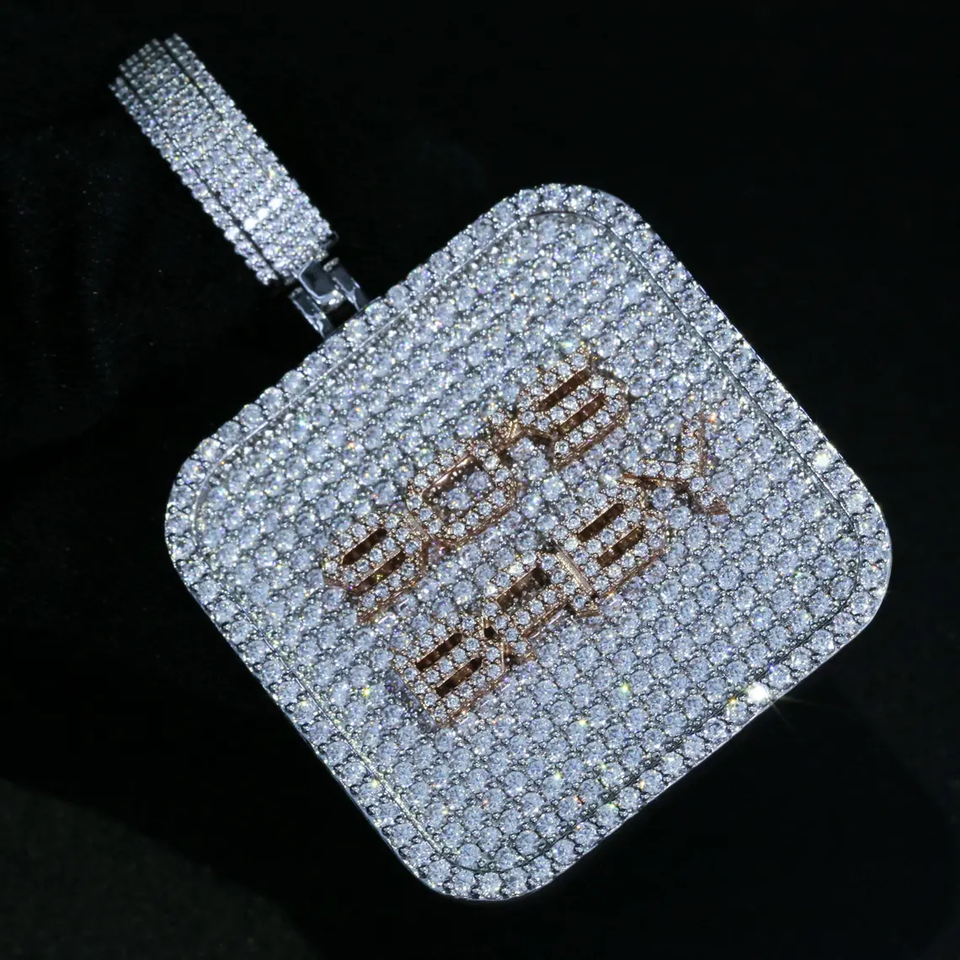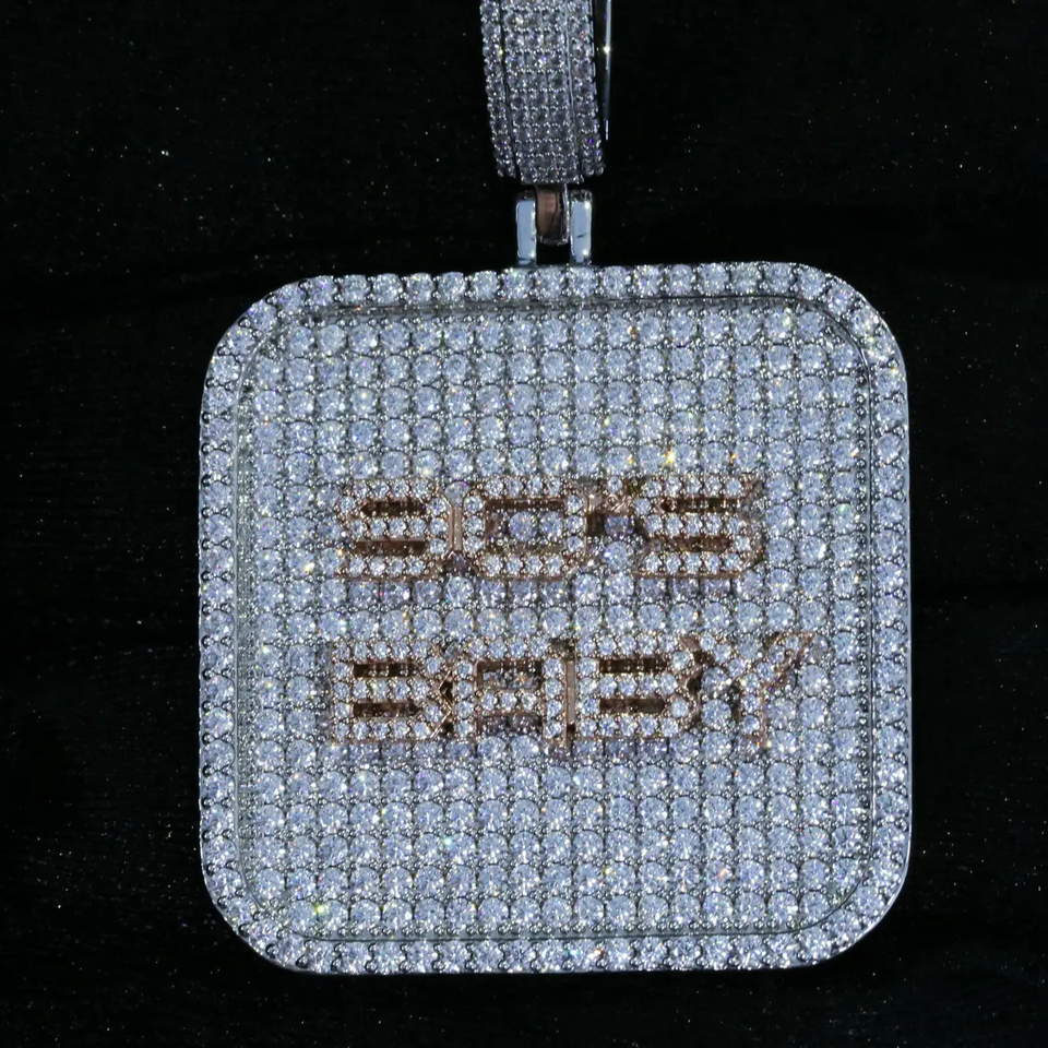 จี้เพชรโมอิสซาไนต์ทรงสี่เหลี่ยมแบบพรีเมียม ประดับเพชร VVS เงินแท้ 925 เครื่องประดับสุดหรู