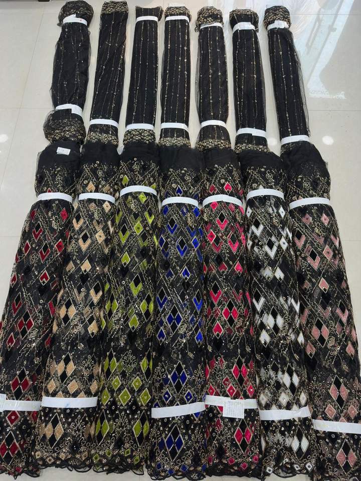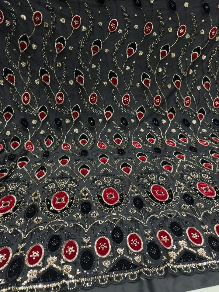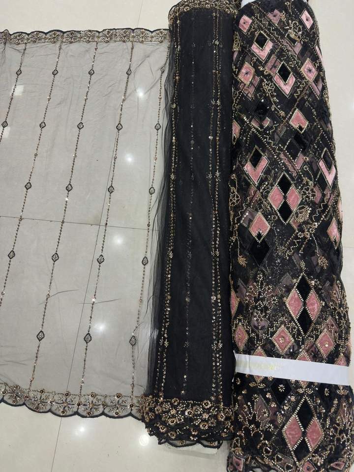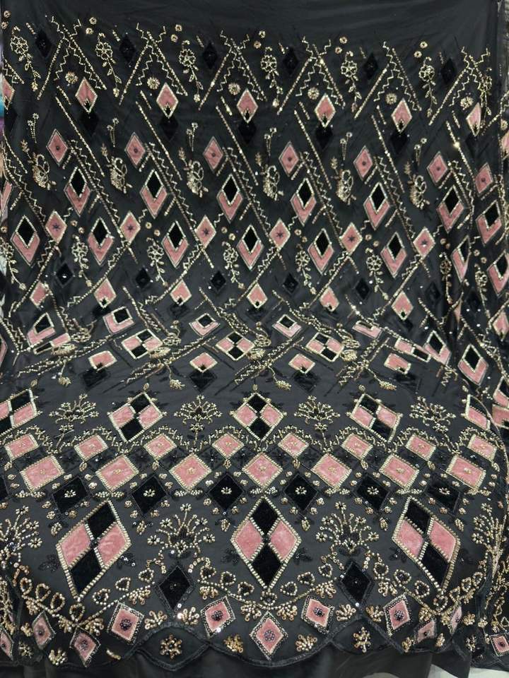 ผ้าเน็ตนำเข้าคุณภาพพรีเมียม งานฝีมือประณีตด้วยลูกปัดและงานปักด้าย เหมาะสำหรับชุดเจ้าสาว ชุดเลเฮนกา และชุดแต่งงาน