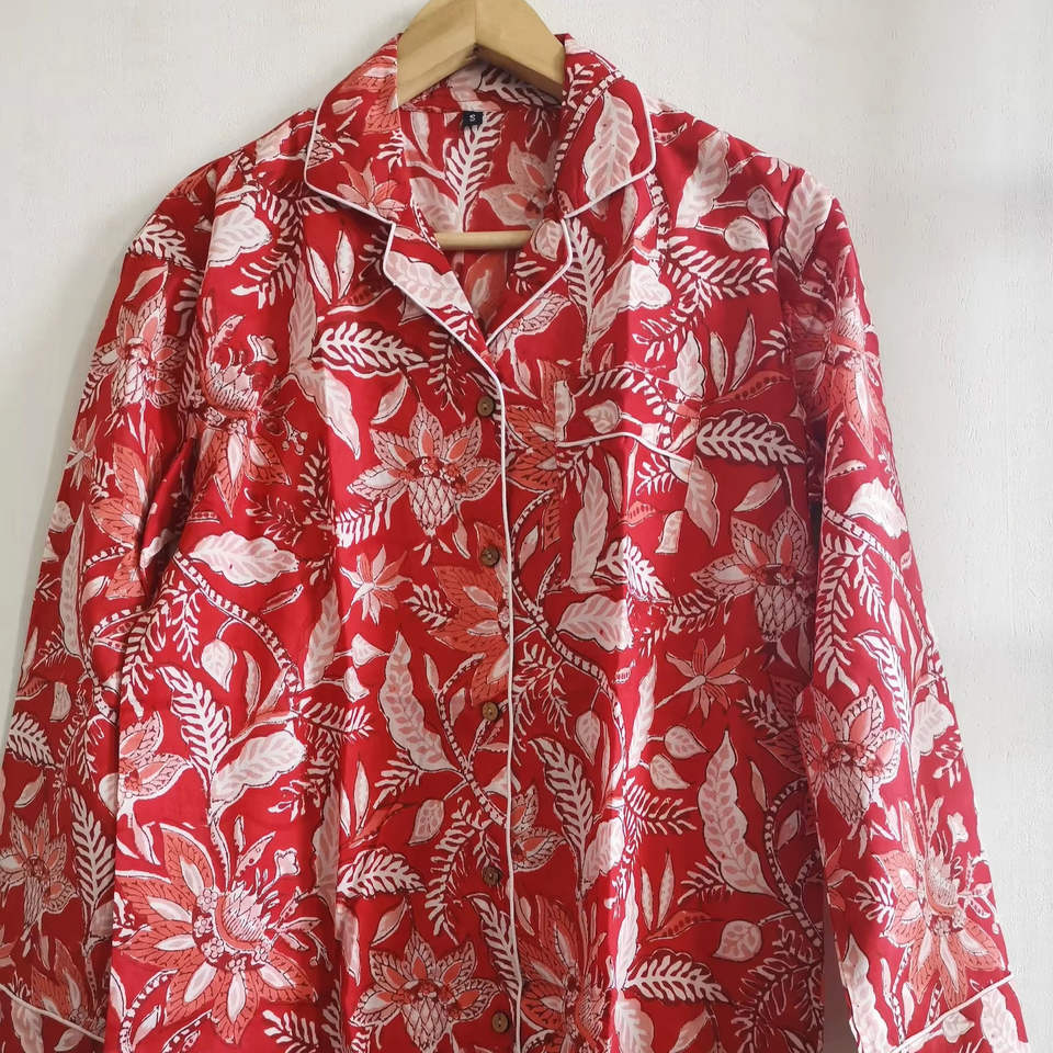 ชุดกางเกงขาสั้นผ้าฝ้ายอินเดียแบบพรีเมี่ยมสำหรับผู้หญิงชุดนอนแขนยาวลายดอกไม้สีเขียวสดใสใส่สบายในฤดูร้อน