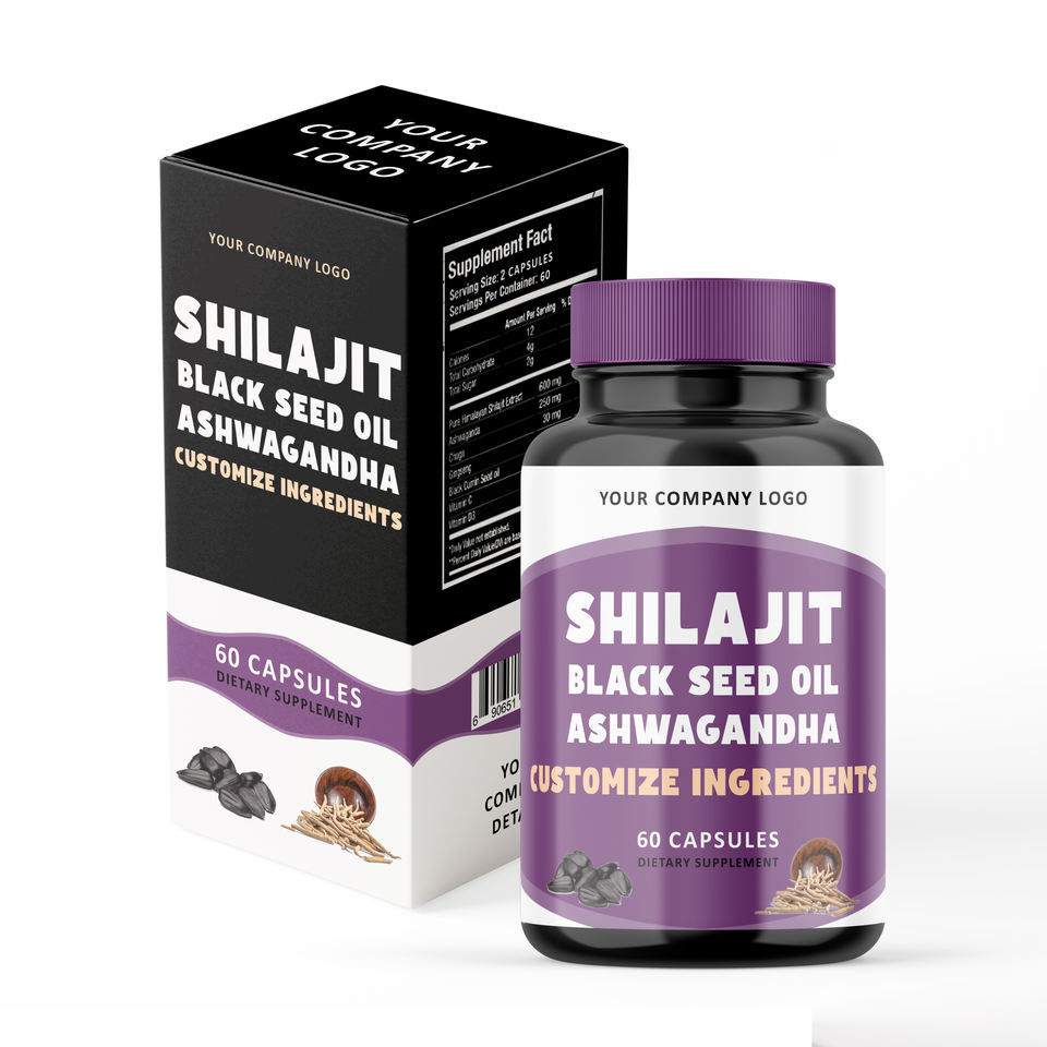 ชื่อผลิตภัณฑ์:Shilajit พร้อมน้ำมันเมล็ดสีดำ Ashwagandha และแคปซูลที่กำหนดเอง
