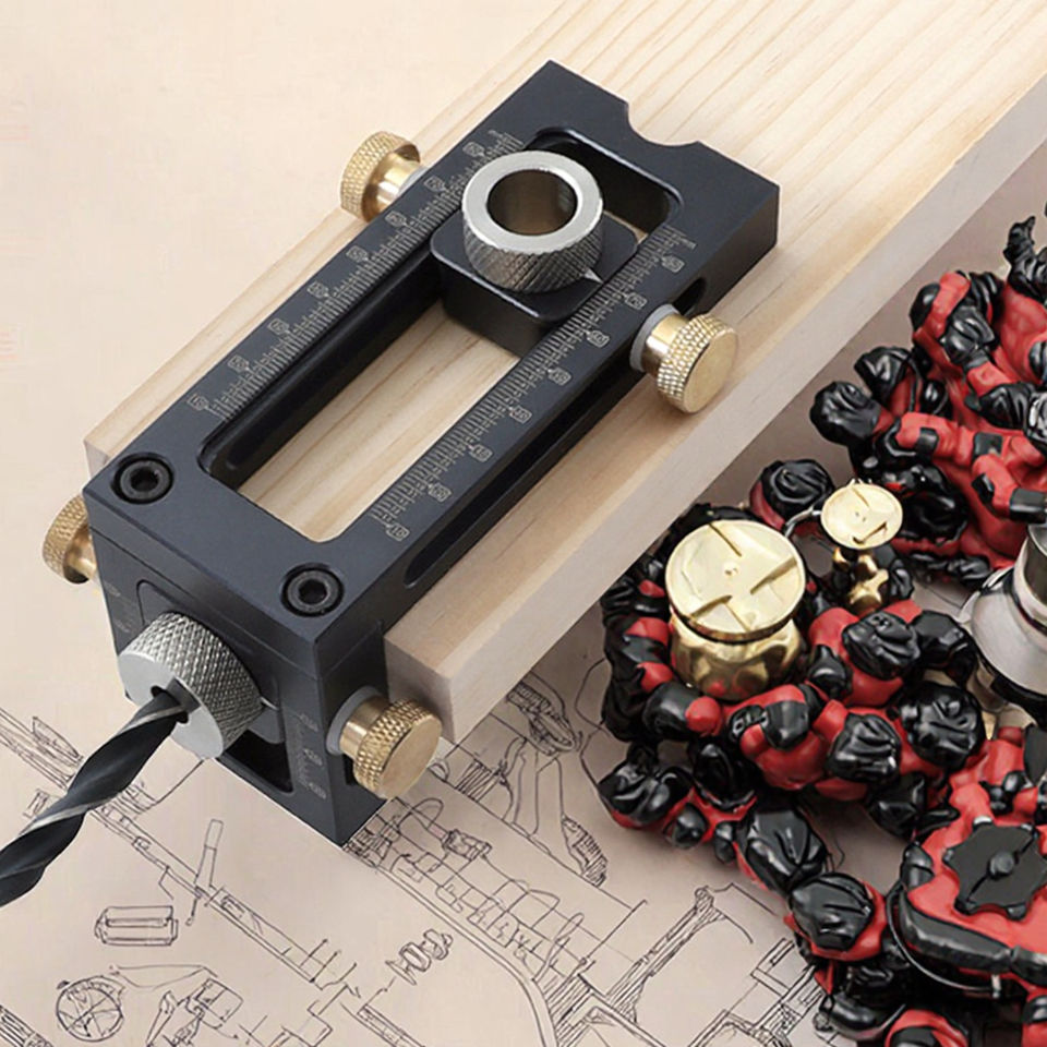 เครื่องมืออุตสาหกรรมระดับพรีเมียม 2 in 1 เครื่องเจาะและตอกหมุด พร้อมตัวระบุตำแหน่ง หัวเจาะแบบไขว้ หัวเจาะแบบแบน หัวเจาะแบบสกรู สำหรับงานไม้
