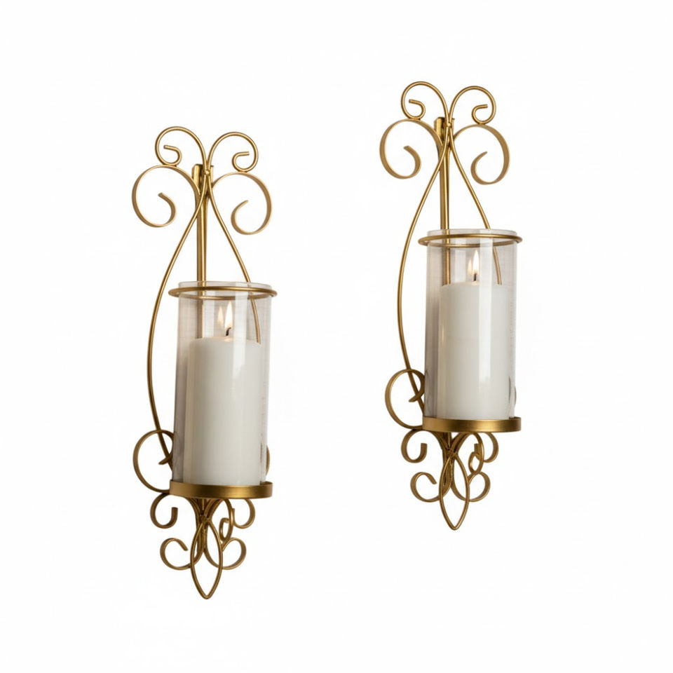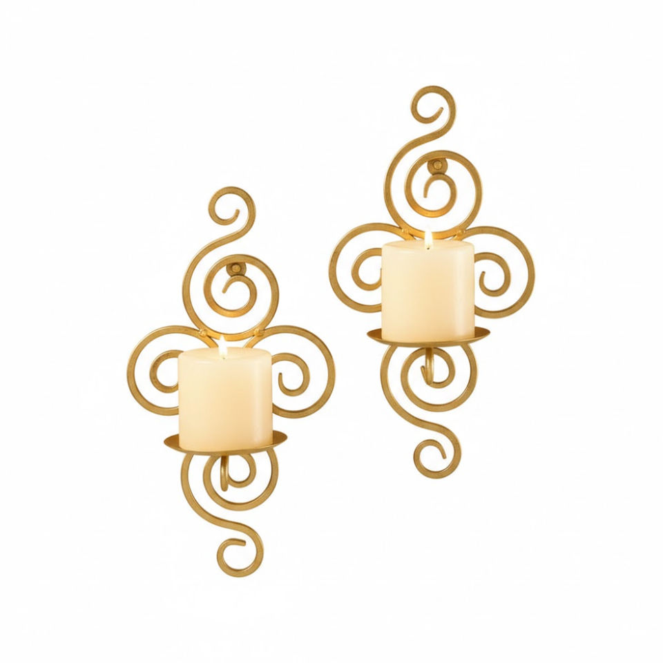 ชุดเชิงเทียนติดผนังเหล็กดีไซน์ทันสมัยระดับพรีเมียม 2 ชิ้น สีทอง ตกแต่งผนังห้องนั่งเล่นสำหรับคริสต์มาส
