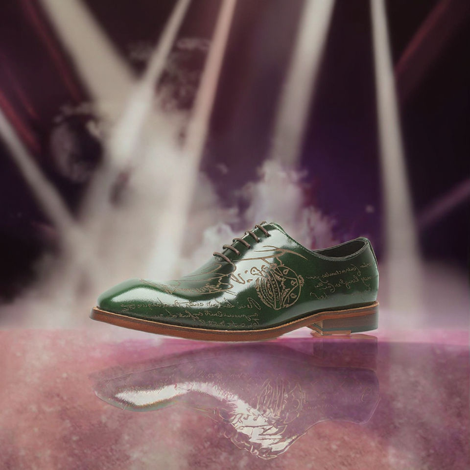 รองเท้าอ็อกซ์ฟอร์ดหนังแท้สีเขียวอิตาลี งานแฮนด์เมด ดีไซน์สลักเลเซอร์ สวยสง่างาม เหมาะสำหรับใส่ในโอกาสทางการช่วงฤดูใบไม้ผลิและฤดูร้อน