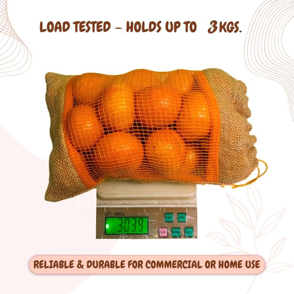 ถุงตาข่ายปอกระเจาพรีเมียม ขนาด 30x28 ซม. ใช้ซ้ำได้ รับน้ำหนักได้ 3 กก. เป็นมิตรกับสิ่งแวดล้อม สำหรับเก็บอาหาร ผลไม้สด และผัก