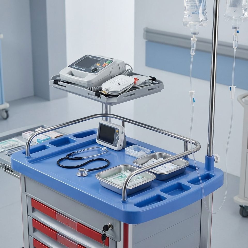 รถเข็นยาสลบเคลื่อนที่พรีเมียม คีลิง พร้อมระบบล็อคกลาง สำหรับห้องผ่าตัด