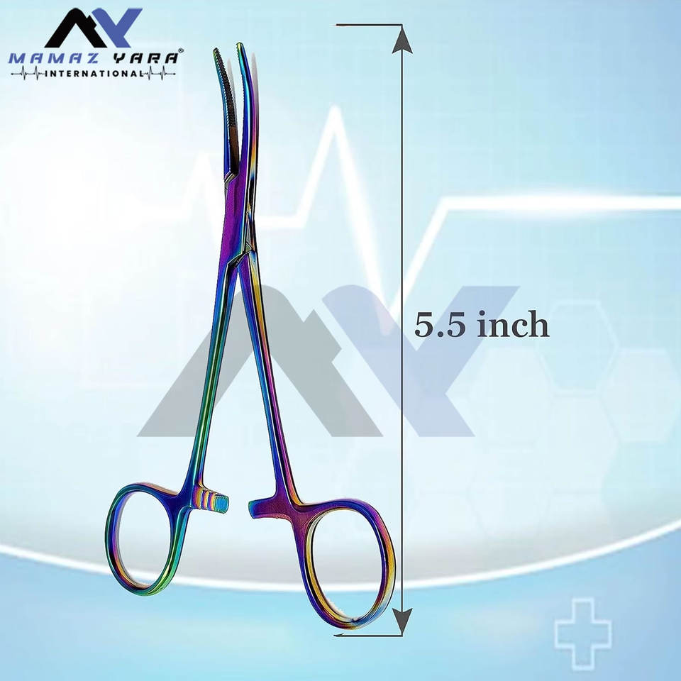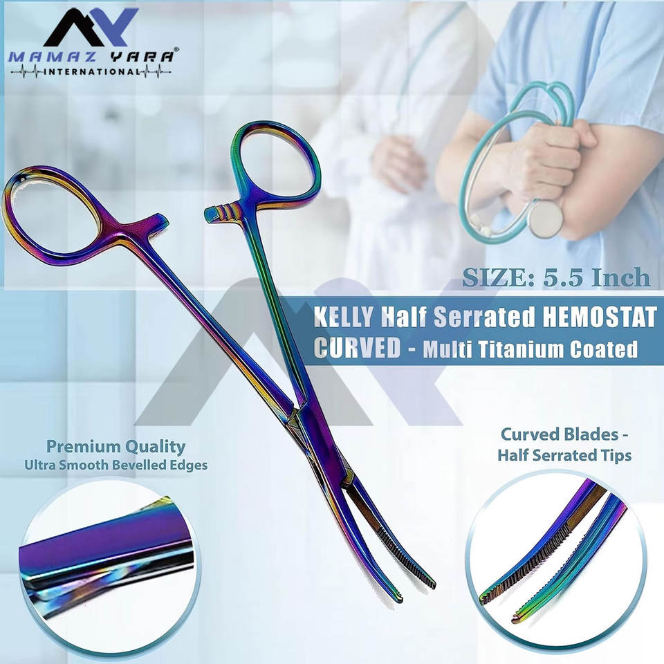 Premium Kelly Hemostat Forceps 5.5" Curved Clamps with Half Serrated Jaws - Nurses Dental - Stainless Steel Rainbow