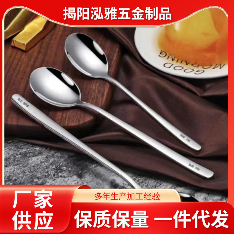 ช้อนซุปเด็กพรีเมียม สแตนเลส 316 เกรดอาหาร ด้ามยาว หนา รูปวงรี ช้อนคนกาแฟ