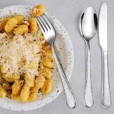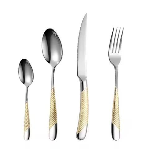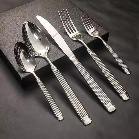ชุดช้อนส้อมมีดสแตนเลสคุณภาพพรีเมียมสำหรับโต๊ะอาหาร ชุดอุปกรณ์รับประทานอาหารที่ทนทานและมีสไตล์