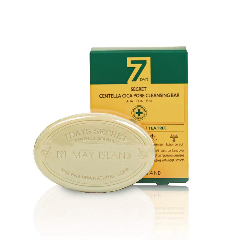 Premium Korean Brand AHA BHA PHA Chemical MAY ISLAND 7 Days Secret Centella Cica Anti-Acne Pore Care Cleansing Soap Bar 100g