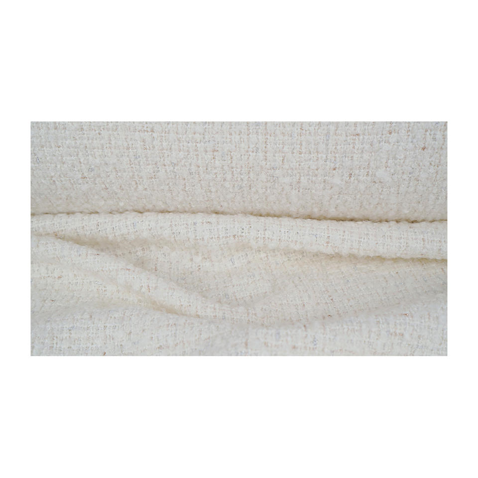 ผ้าทวีดแฟนซีคุณภาพพรีเมียม ผลิตในเกาหลี เนื้อผ้าบูเคลสีงาช้างเงิน-ทอง ให้ความอบอุ่น พร้อมบริการรับผลิตแบบ OEM และ ODM สำหรับสิ่งทอที่สั่งทำพิเศษ