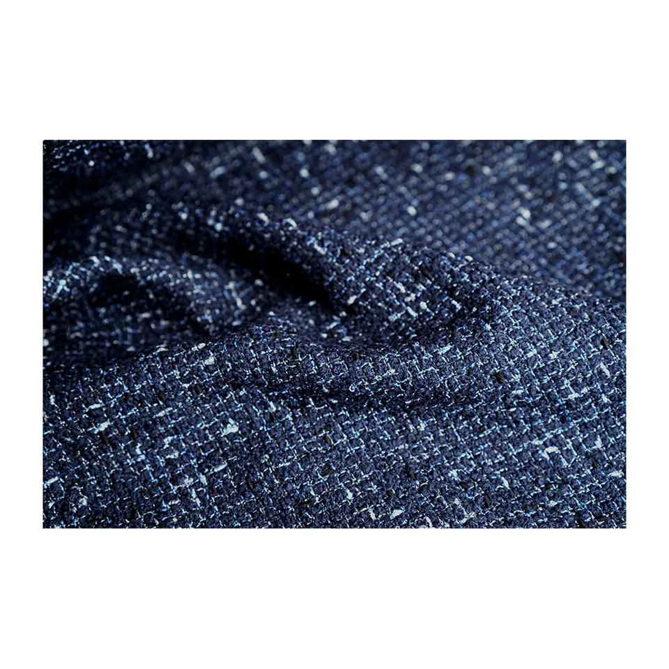 ผ้าทวีดแฟนซีคุณภาพพรีเมียม ผลิตในเกาหลี สีน้ำเงินกรมท่า ลายทอเมทัลลิกสีเงิน พร้อมบริการรับผลิตแบบ OEM และ ODM
