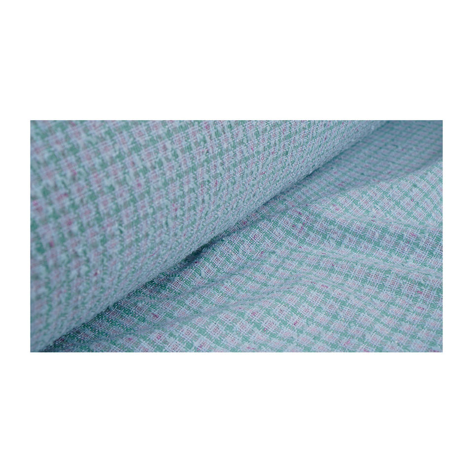 ผ้าทวีดแฟนซีคุณภาพพรีเมียม ผลิตในเกาหลี สีเขียวอมม่วงเมทัลลิก ทอลายแฟนซี รับผลิตแบบ OEM และ ODM ผ้าทอสั่งทำพิเศษ
