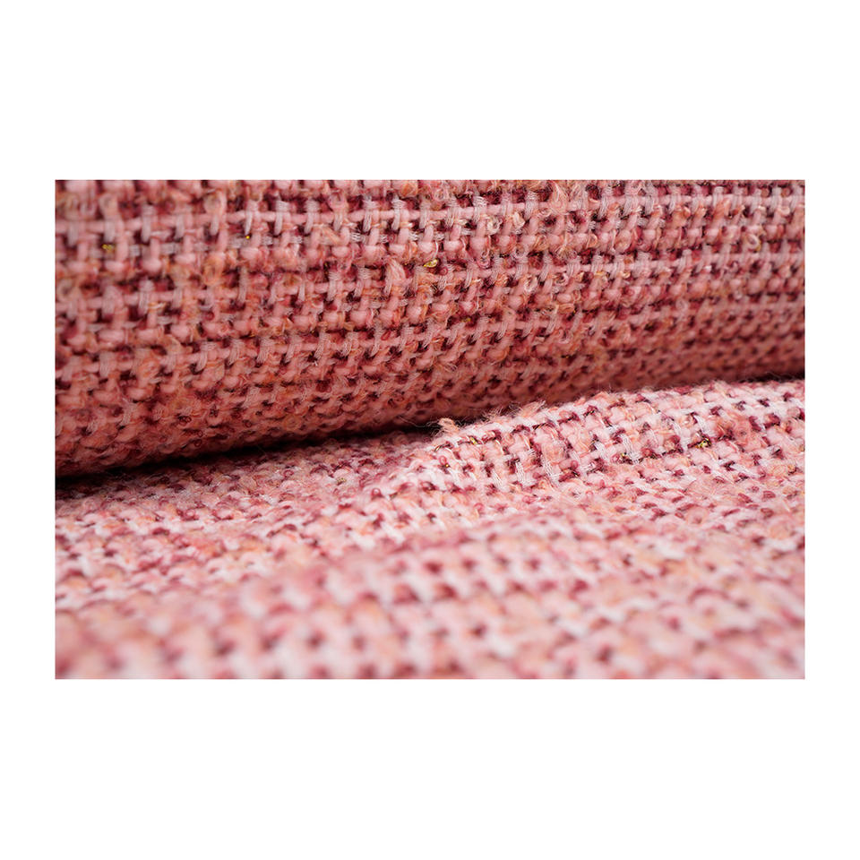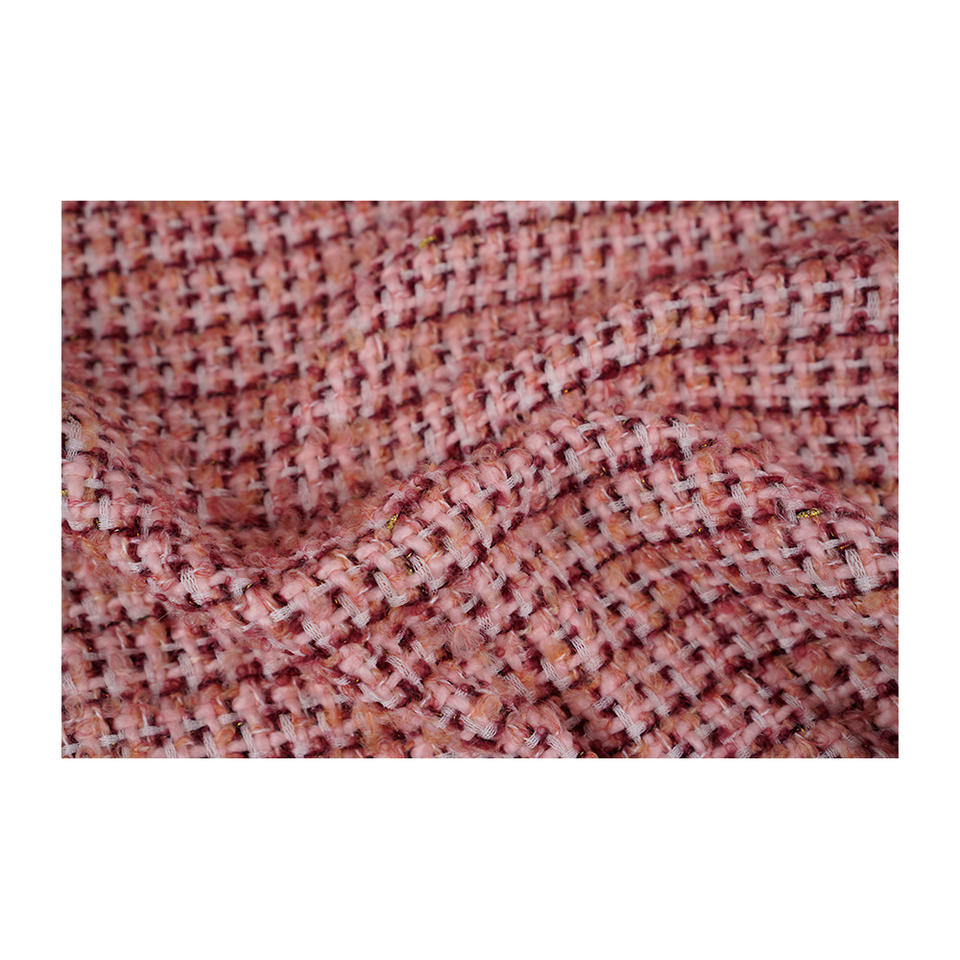 ผ้าทวีดแฟนซีคุณภาพพรีเมียม ผลิตในเกาหลี สีแดงอมชมพูเข้ม ผ้าตาข่ายเมทัลลิกเนื้อสัมผัสแฟนซี รับผลิตแบบ OEM และ ODM ผ้าทอสั่งทำพิเศษ
