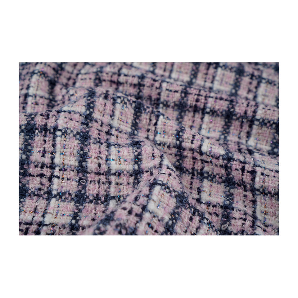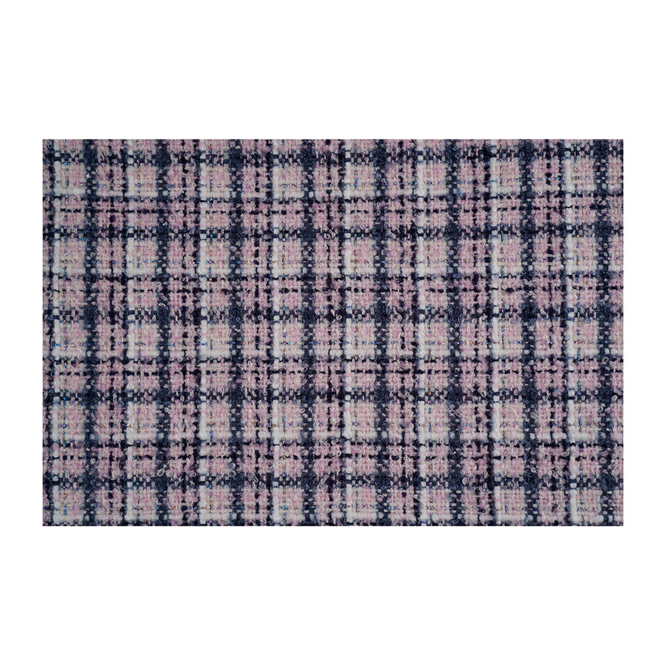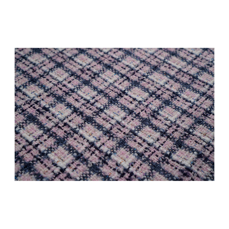 ผ้าทวีดแฟนซีคุณภาพพรีเมียม ผลิตในเกาหลี ลายตารางสีขาว-ม่วง-กรมท่า รับผลิตแบบ OEM และ ODM ผ้าทอสั่งทำพิเศษ
