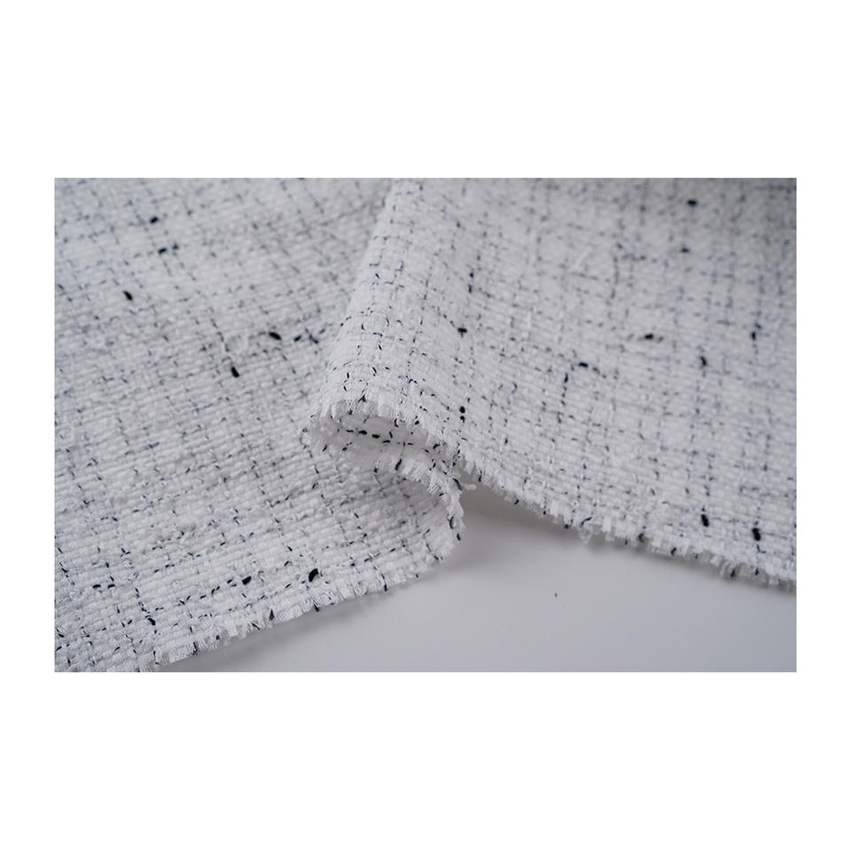 ผ้าทวีดแฟนซีคุณภาพพรีเมียม ผลิตในเกาหลี พร้อมเทปสีขาวและลายปมแบบทอแฟนซี รับผลิตแบบ OEM และ ODM ผ้าทอสั่งทำพิเศษ