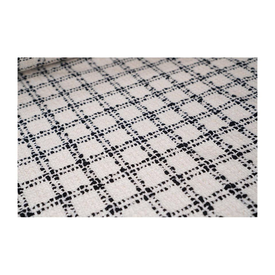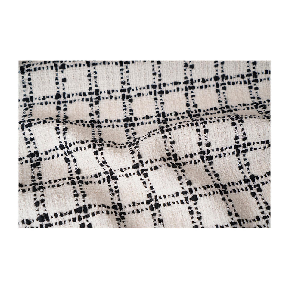 ผ้าทวีดแฟนซีคุณภาพพรีเมียม ผลิตในเกาหลี สีงาช้าง-เบจ-ดำ ลายตารางถักด้วยเส้นด้ายโซ่ รับผลิตแบบ OEM และ ODM ผ้าทอสั่งทำพิเศษ