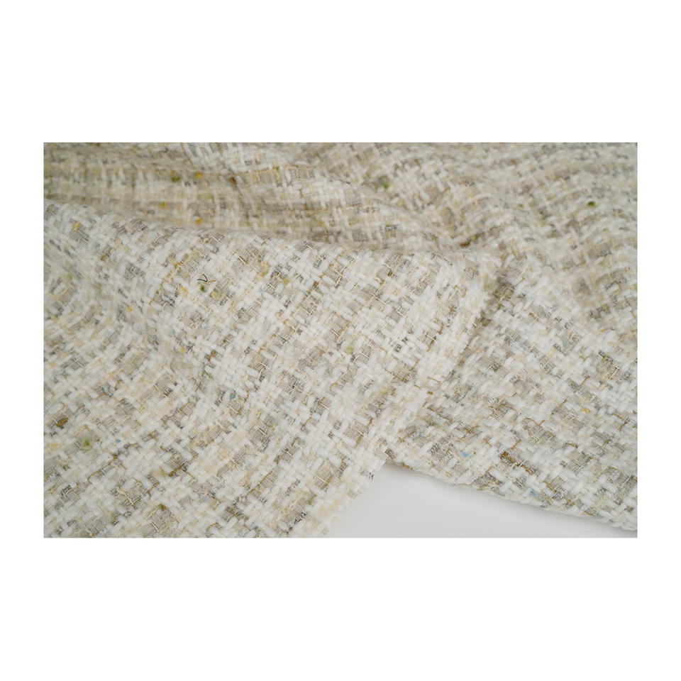 ผ้าทวีดแฟนซีคุณภาพพรีเมียม ผลิตในเกาหลี สีขาว-พิสตาชิโอ-น้ำตาล ผ้าบูเคลเนื้อสัมผัสพิเศษ ทอแบบแฟนซี รับผลิตแบบ OEM และ ODM ผ้าทอสั่งทำพิเศษ