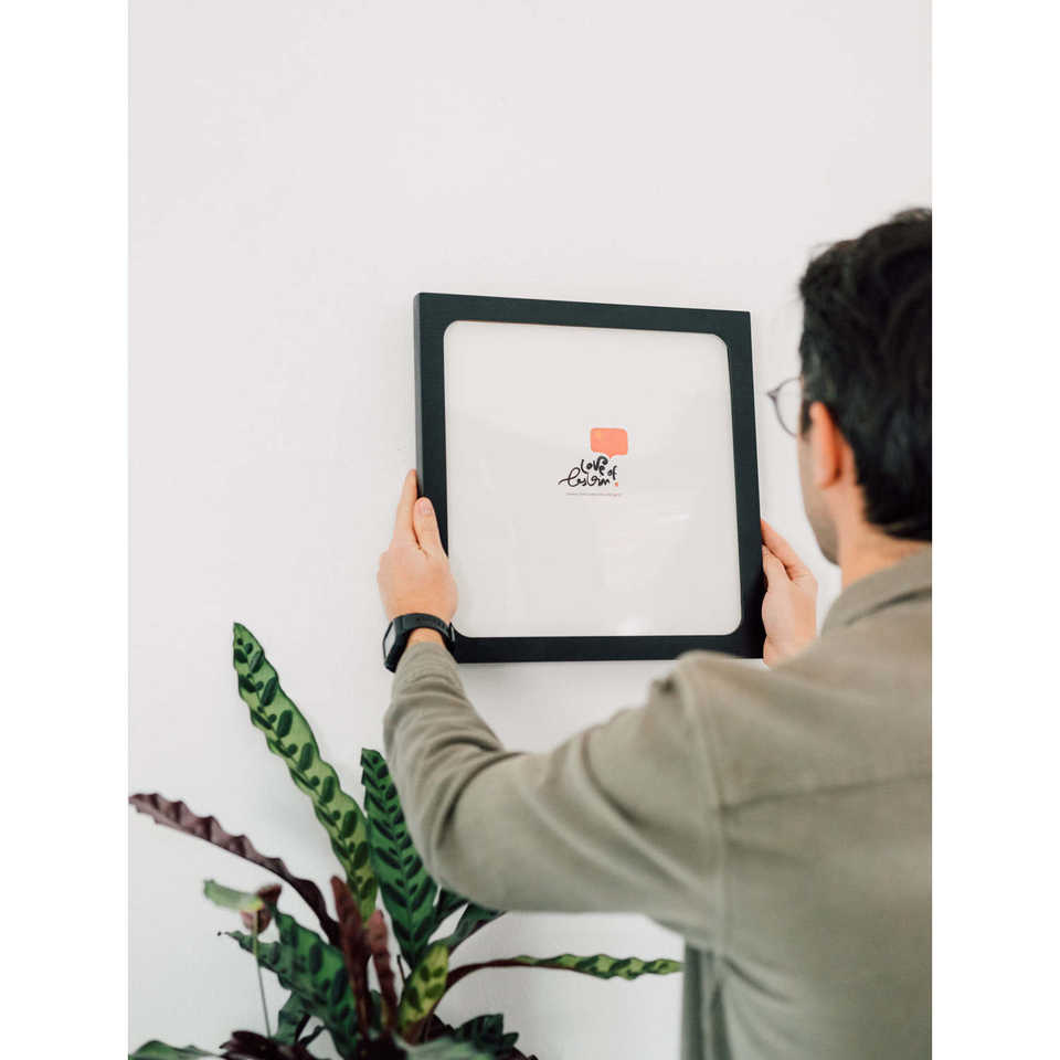 กรอบรูปปกอัลบั้มไวนิลพรีเมียม ขนาด 32 x 32 ซม. รูปทรงสี่เหลี่ยม ทำจากไม้ MDF พร้อมกรอบอะลูมิเนียม สำหรับตกแต่งบ้านและโฆษณา