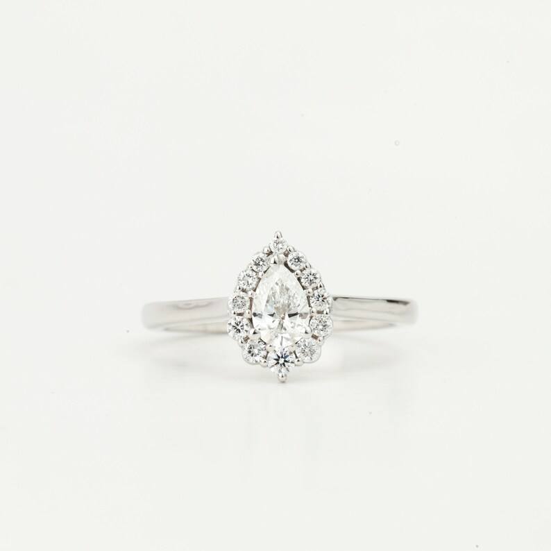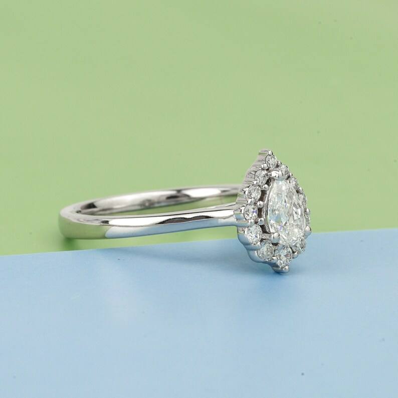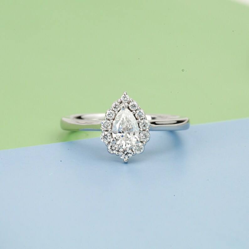 แหวนหมั้นเพชร CVD คุณภาพพรีเมียมทรงลูกแพร์ พร้อมเพชรเม็ดเล็กทรงรัศมี E F VS เพชรเพาะเลี้ยงในห้องปฏิบัติการ เป็นมิตรต่อสิ่งแวดล้อม เครื่องประดับเจ้าสาว