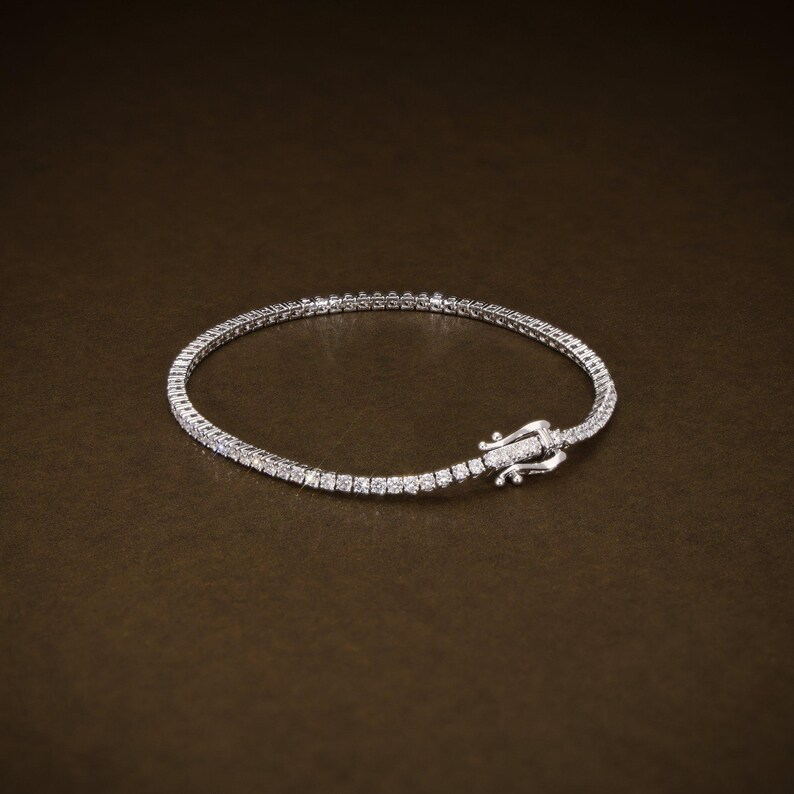สร้อยข้อมือเพชรเทนนิสเกรดพรีเมียม ผลิตในห้องปฏิบัติการ ทรงกลมเจียระไนแบบบริลเลียนท์ E-F VVS2 ได้รับการรับรอง ดีไซน์คลาสสิก สวยสง่า สำหรับผู้หญิง