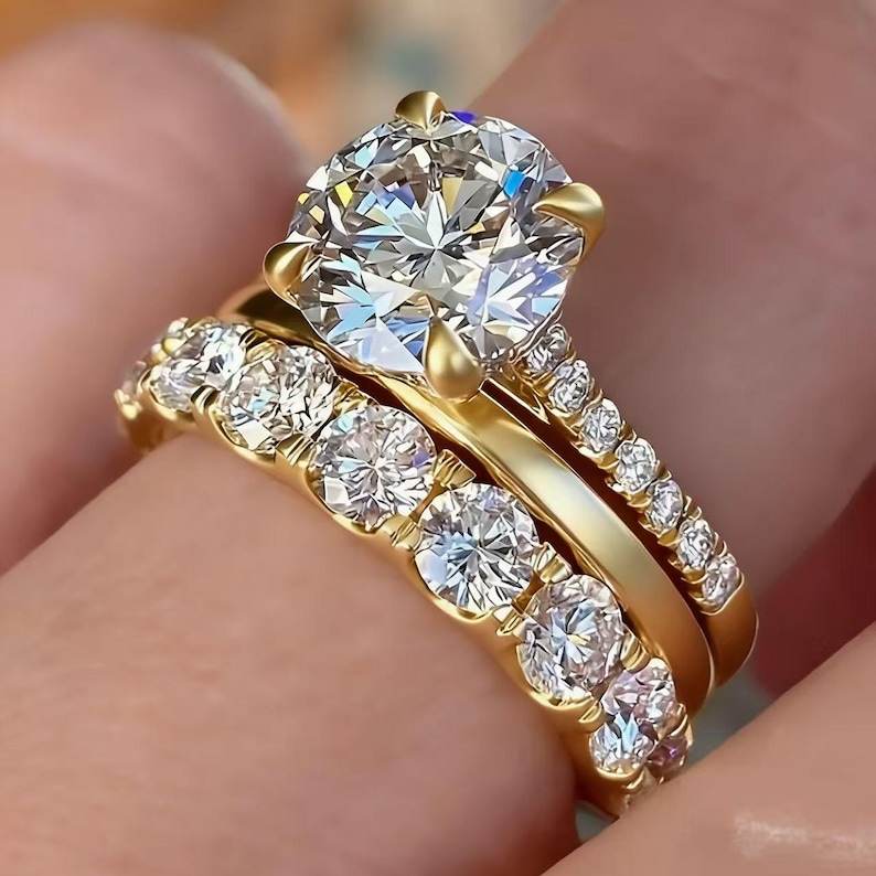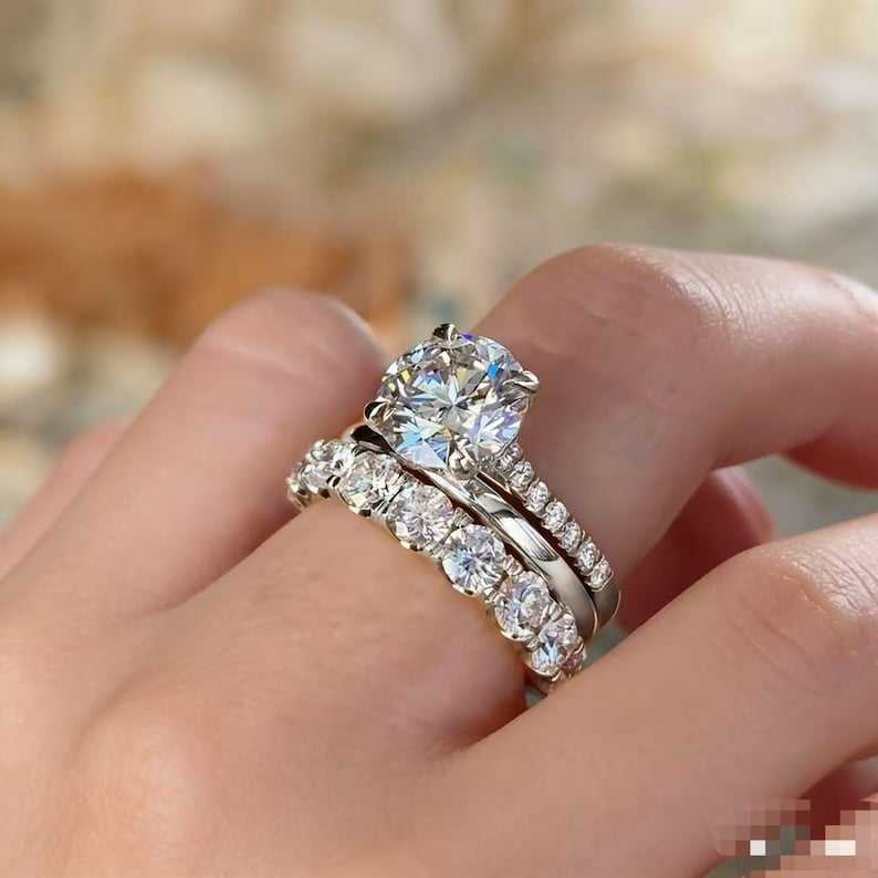 แหวนเพชรทรงกลม 1.01 กะรัต คุณภาพพรีเมียม ผลิตในห้องปฏิบัติการ พร้อมวงแหวนแบบฮาล์ฟอีเทอร์นิตี้ ทองคำแท้ 14K ของขวัญเซอร์ไพรส์สำหรับงานแต่งงาน