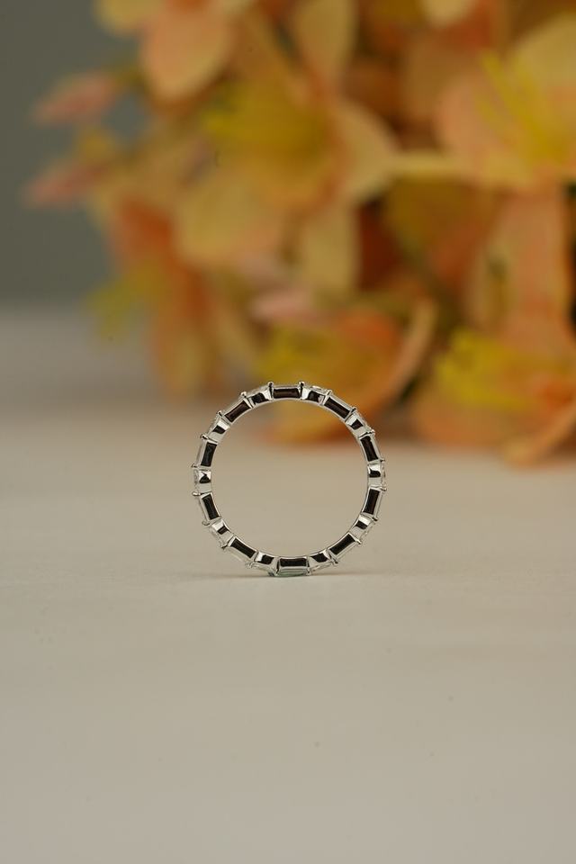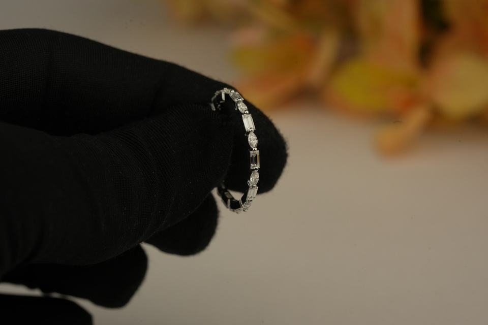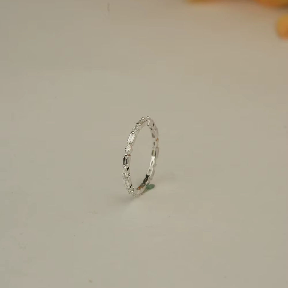 แหวนเพชรสำหรับปลูกในห้องปฏิบัติการระดับพรีเมี่ยม0.75กะรัตมาร์ควิชและบาแกตต์ตัด VS1ความชัดเจนมีความชัดเจน IGI SGL ได้รับการรับรองจากทองคำโรสโกลด์ซิลเวอร์