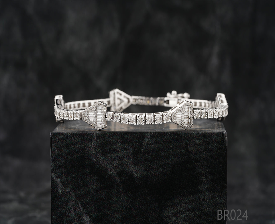 สร้อยข้อมือเพชรทรงกลมเจียระไนแบบบริลเลียนท์ ผลิตในห้องปฏิบัติการ ระดับพรีเมียม พร้อมสายคิวบาลิงค์สองแถว | เครื่องประดับฮิปฮอปแบบ Iced Out สีทอง ได้รับการรับรองจาก IGI
