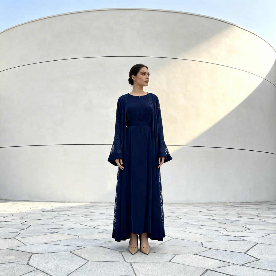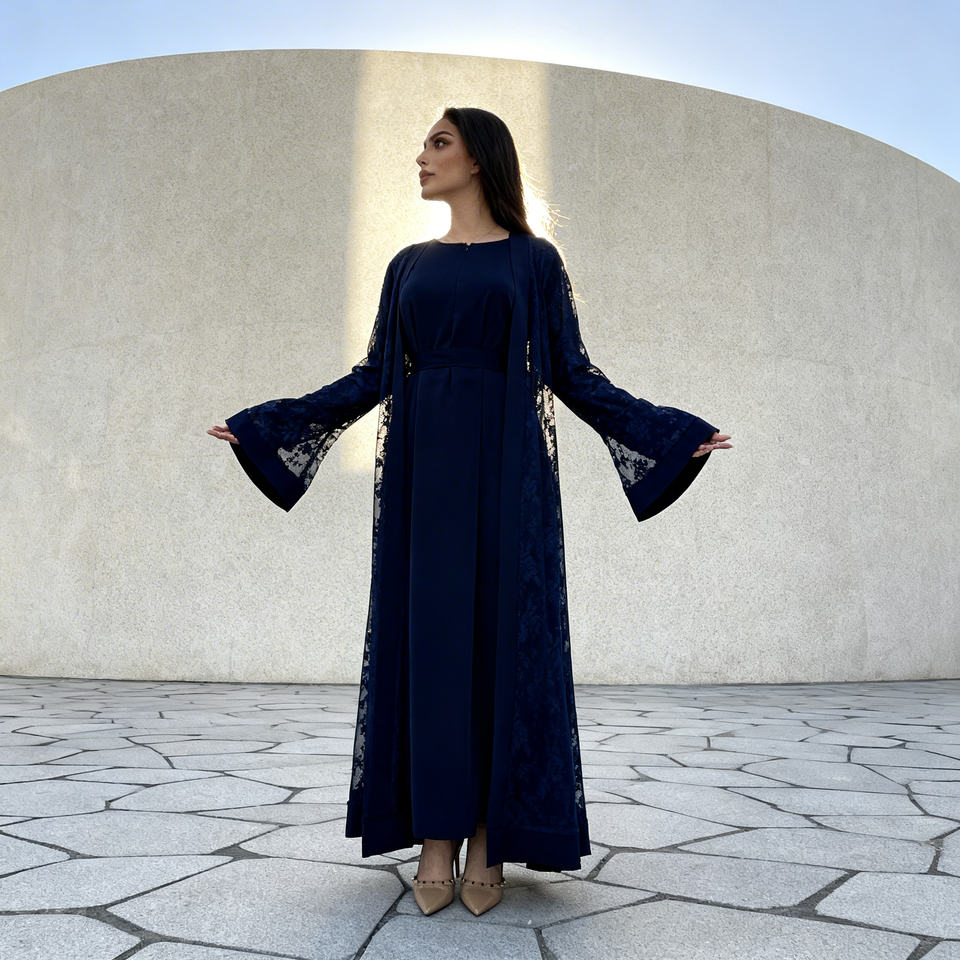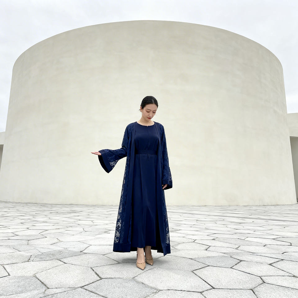 ชุดอาบายะผ้าลูกไม้โพลีเอสเตอร์พรีเมียมสำหรับสตรีมุสลิม ชุดราตรีเรียบหรู สง่างาม รับสั่งทำขายส่ง