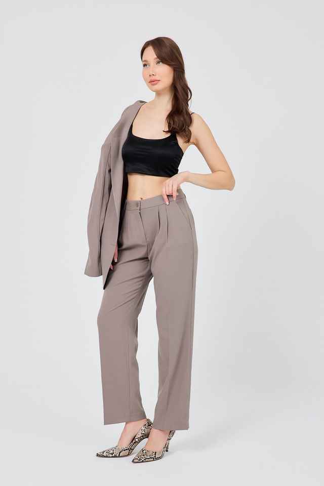 ชุดสูทผ้าขนมิงค์แบบพรีเมี่ยมสำหรับผู้หญิงพร้อมเสื้อเบลเซอร์และกางเกงขายาวไหล่ประดับหมุดสำหรับใส่ในสำนักงานผ้าทอหรูหรา/พร้อมส่ง